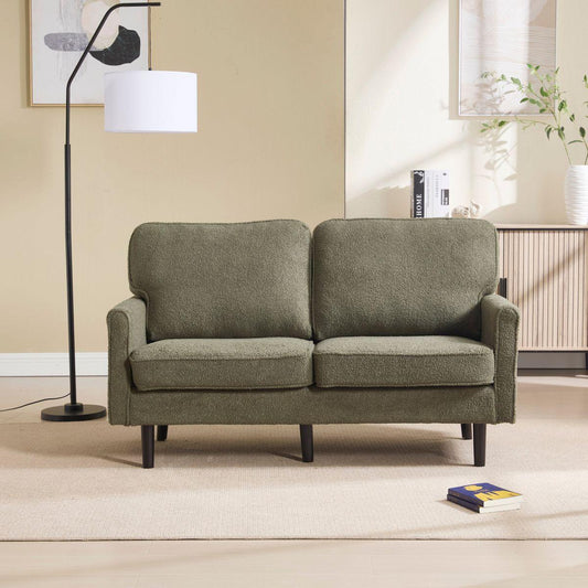 COOLMORE Loveseat Sofa, Mid Century Modern Love Seat, 2 Seater Sofa Couches for Living Room, Small Couch with USB & Removable Pillow Cover, Comfy Couch for Bedroom, Apartment (Green)