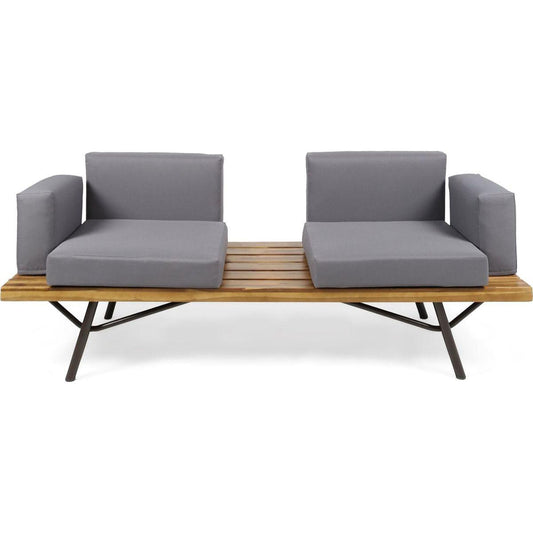 Wood Structure Outdoor Sofa Set with gray Cushions Exotic design Water-resistant and UV Protected texture High quality acacia wood Strong Metal Accessories