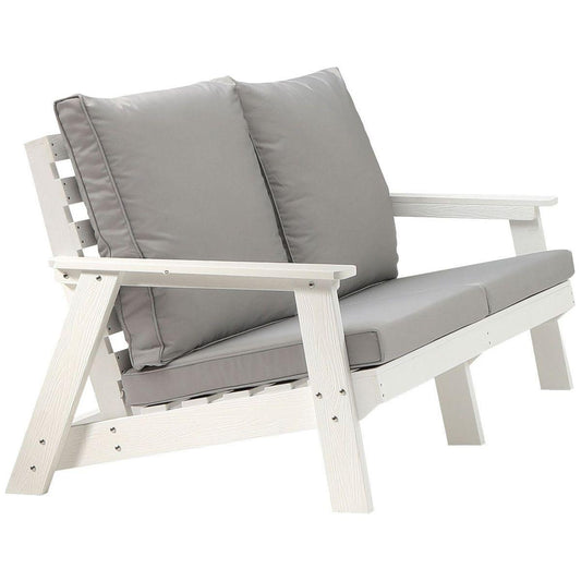 HIPS Loveseat with Cushion, Wood Grain Outdoor Garden Sofa,White/Grey