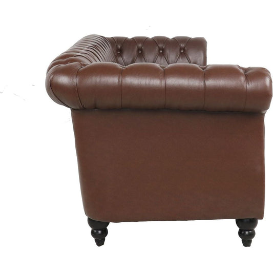 House 84' BLACK PU Rolled Arm Chesterfield Three Seater Sofa.