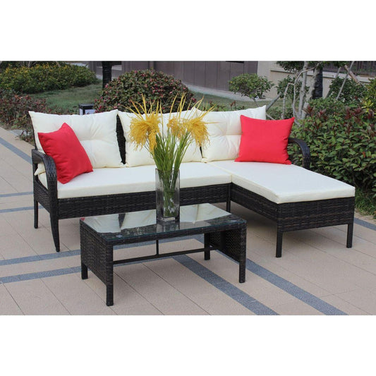 Outdoor patio Furniture sets 3 piece Conversation set wicker Ratten Sectional Sofa With Seat Cushions(Beige Cushion)