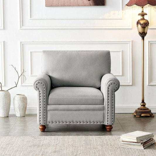 Living Room Sofa Single Seat Chair with Wood Leg Grey Fabric