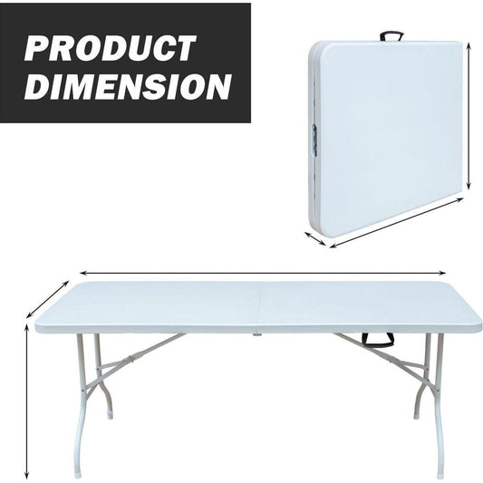 6FT Portable folding table with hand grip, suitable for picnic camping garden dinner party, stable and reliable, versatile