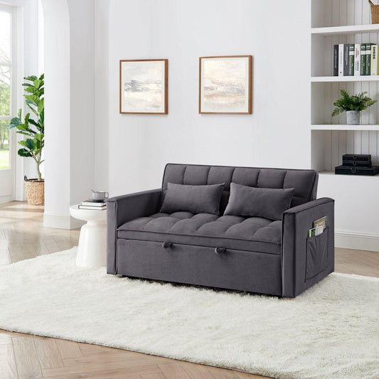 54.33 inch versatile foldable sofa bed in 3 lengths, modern sofa sofa sofa velvet pull-out bed, adjustable back (GRAY)