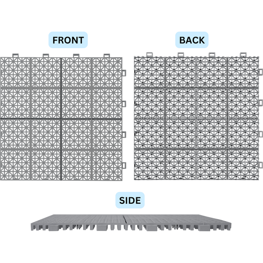12 x 12 Inch Gray Interlocking Deck Tiles Plastic Waterproof Outdoor All Weather Anti-slip Bathroom Shower Balcony Porch Strong Weight Capacity Upto 6613 LBS, Rosette Pattern Pack of 12