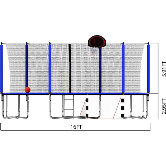 16FT Trampoline with Basketball Hoop pump and Ladder(Inner Safety Enclosure) with soccer goal blue