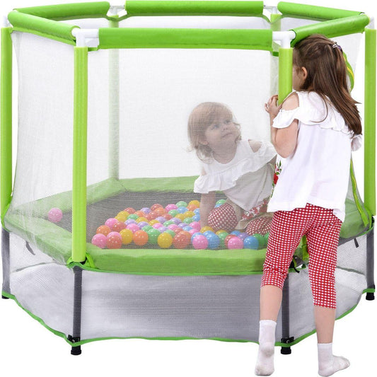 55" Toddlers Trampoline with Safety Enclosure Net and Balls, Indoor Outdoor Mini Trampoline for Kids