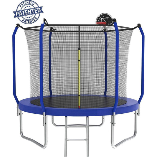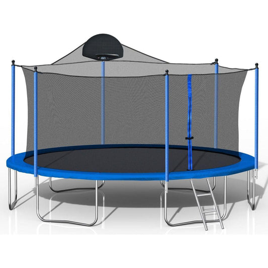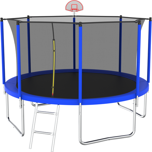 YC 12FT Recreational Trampolines with Enclosure for Kids and Adults with Patented Fiberglass Poles - Pumpkin Blue
