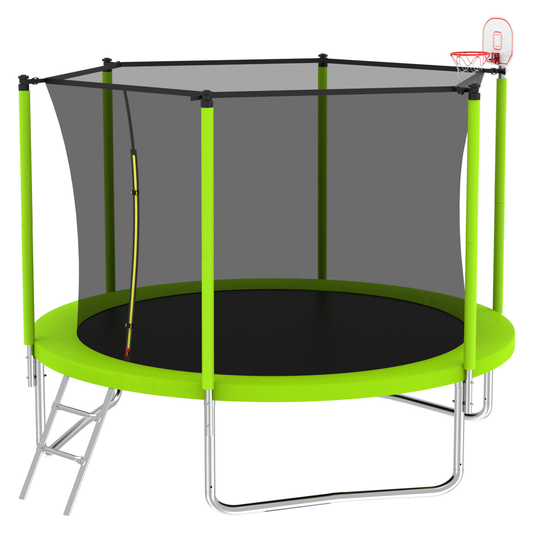 YC 10FT Recreational Trampolines with Enclosure for Kids and Adults with Patented Fiberglass Curved Poles -Pumpkin Green