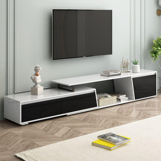 Modern, Minimalist Rectangle Extendable TV Stand, TV Cabinet with 2 Drawers and 1 Cabinet for Living Room, Up to 100"