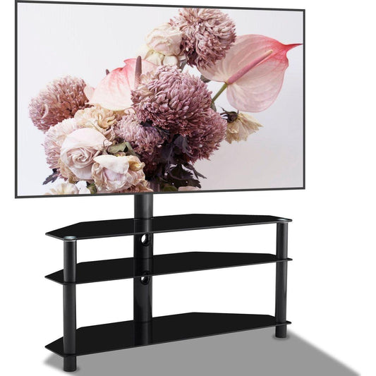 35.4 inch Black Multi-function TV Stand Height Adjustable Bracket Swivel 3-Tier