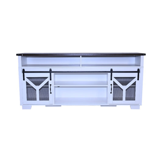 65.3' TV Stand with LED light strips and Iron mesh barn door Y decorative strip white + Black walnut color (top) farmhouse