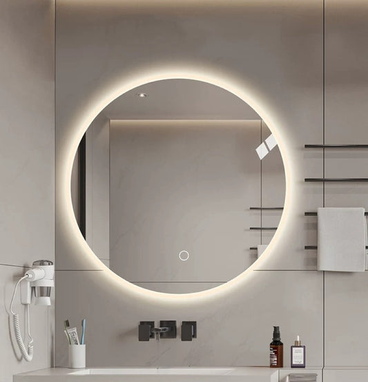 Round LED bathroom mirror with light, wall-mounted vanity mirror, anti-fog, adjustable color temperature and dimming function, suitable for makeup mirrors in bedrooms and bathrooms