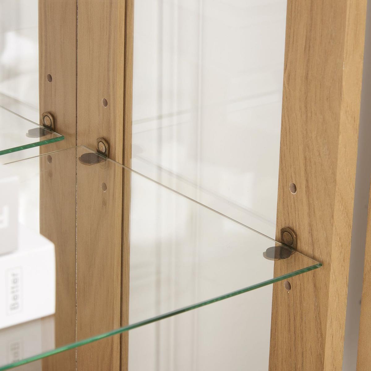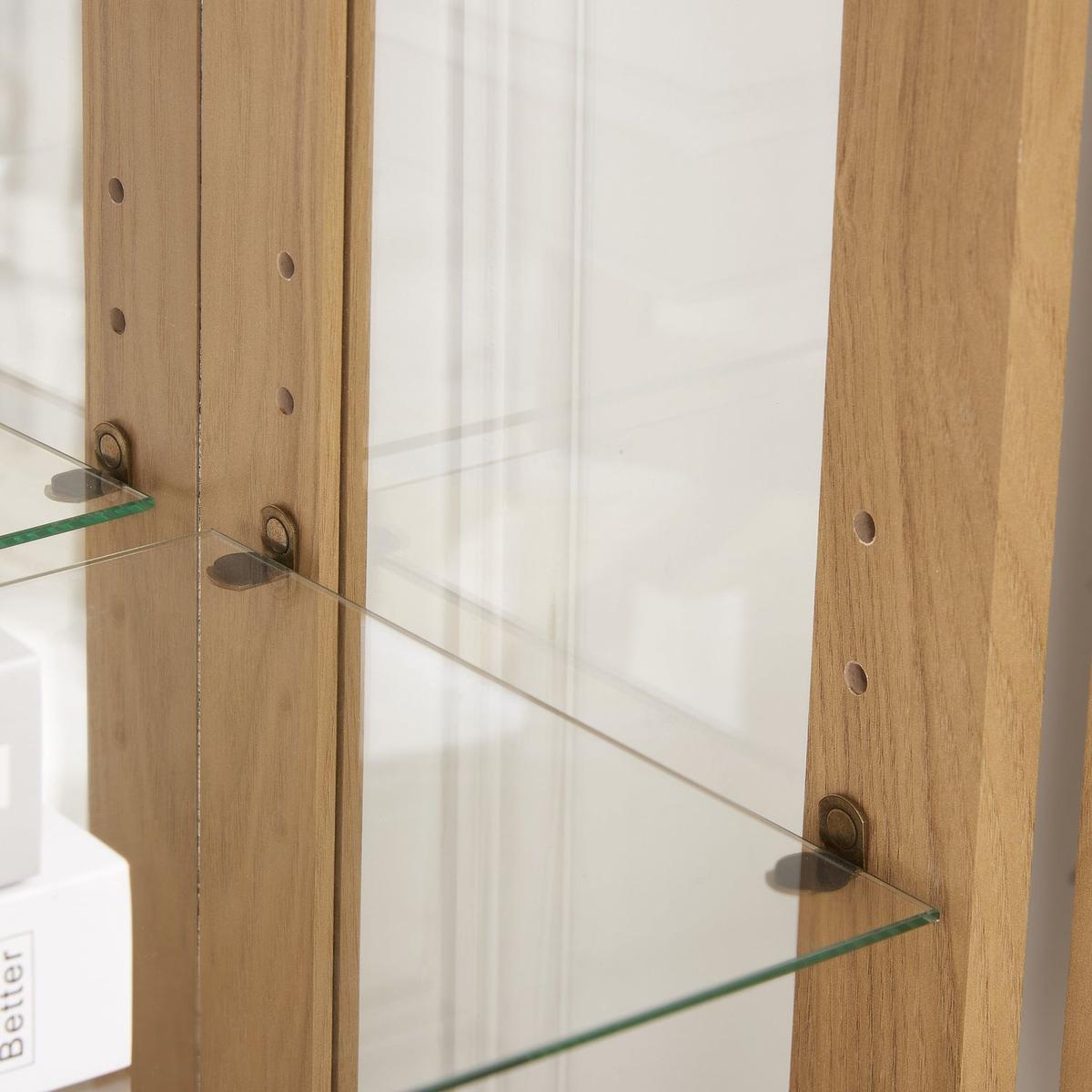The adjustable shelves of this exquisite display cabinet can be effortlessly repositioned to accommodate items of varying sizes and weights, showcasing its versatility and adaptability.