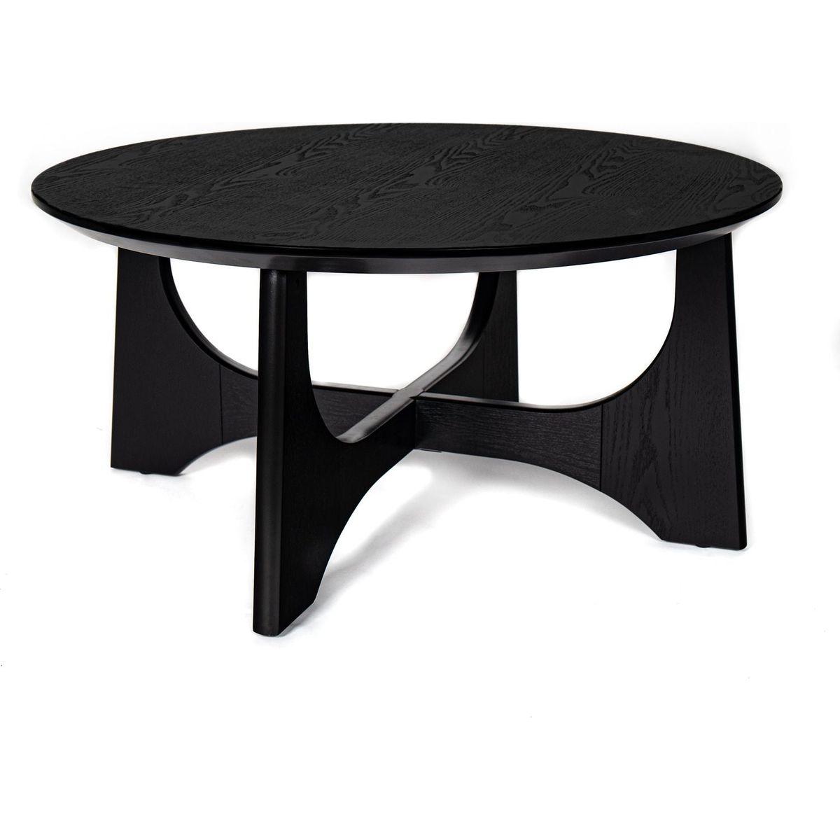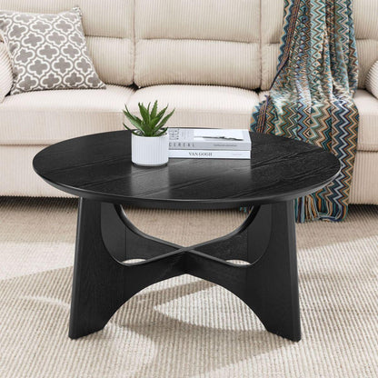 36" Round Coffee Table, Wooden Coffee Tables for Living Room Reception Room (Black)