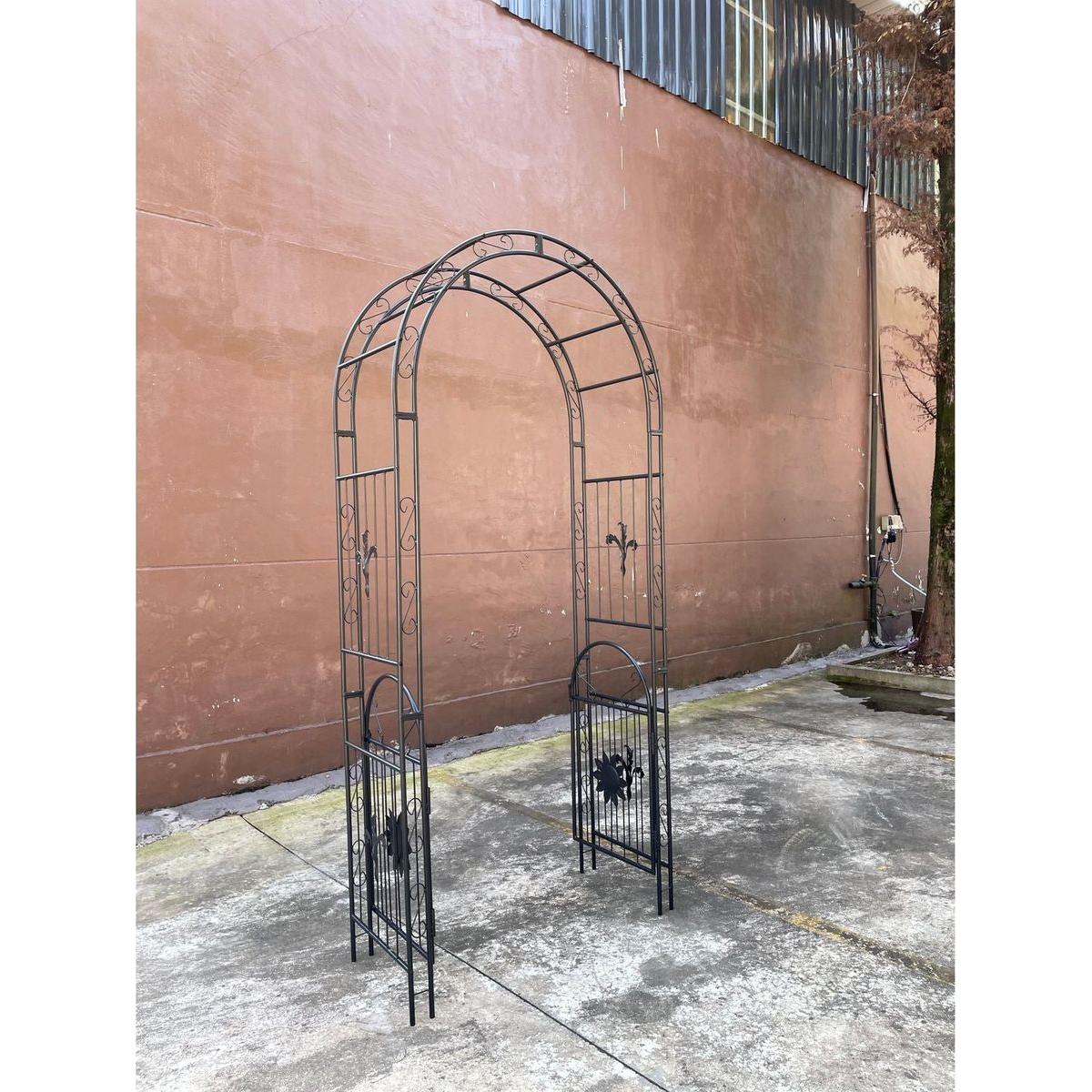 Metal Garden Arch with doors Garden Arbor Trellis Climbing Plants Support Arch Outdoor Arch Wedding Arch Party Events Archway Black