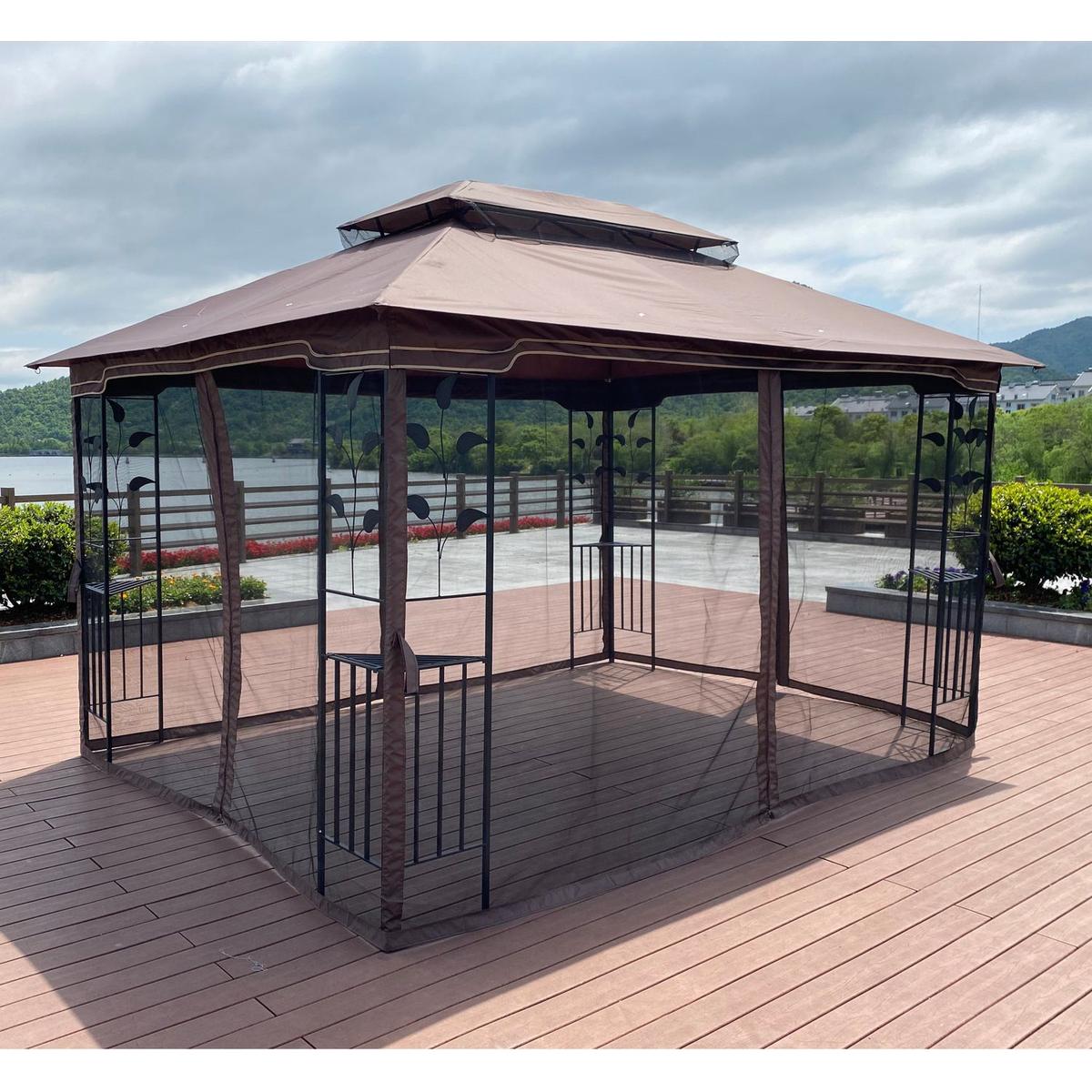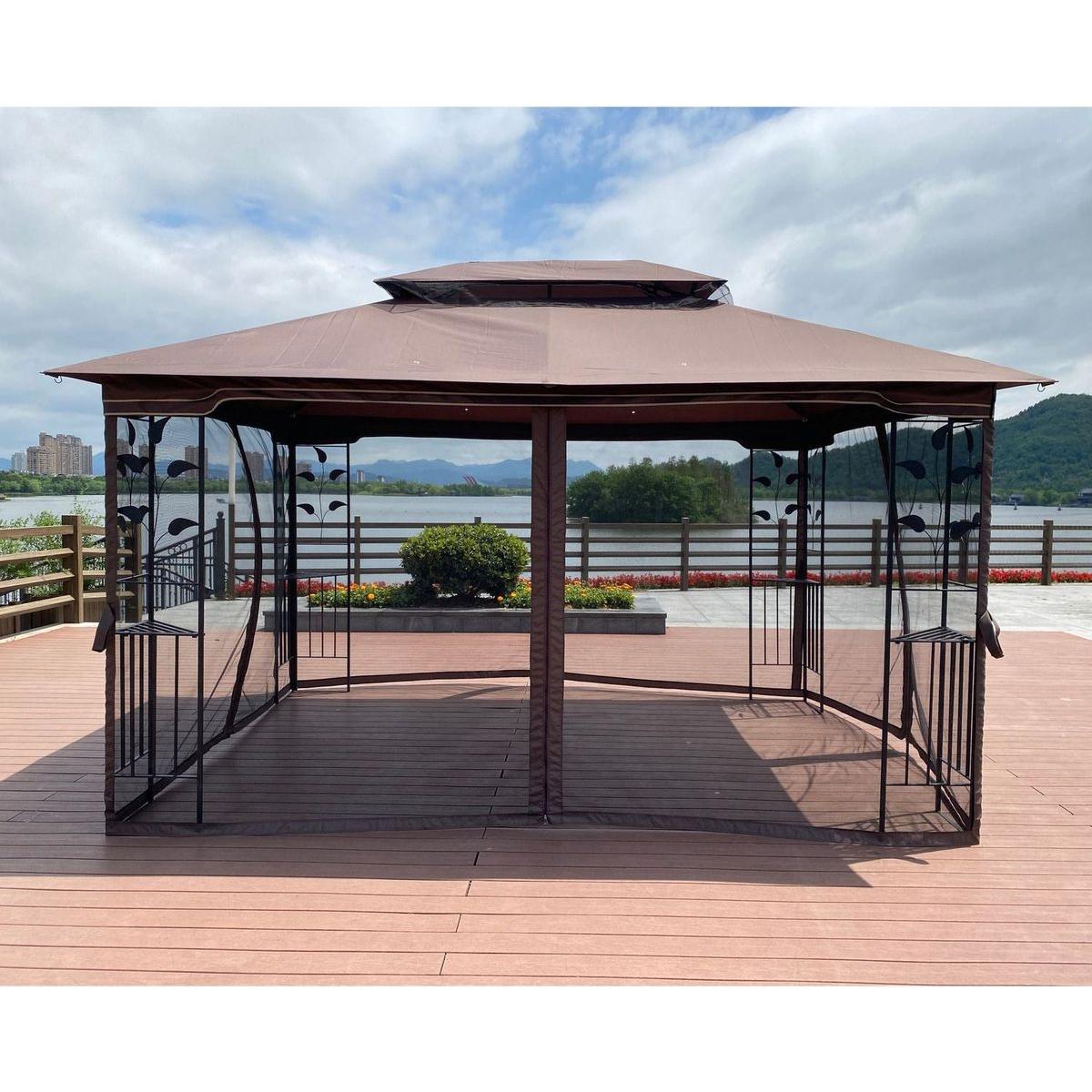 13x10 Outdoor Patio Gazebo Canopy Tent With Ventilated Double Roof And Mosquito net (Detachable Mesh Screen On All Sides),Suitable for Lawn, Garden, Backyard and Deck, Brown Top