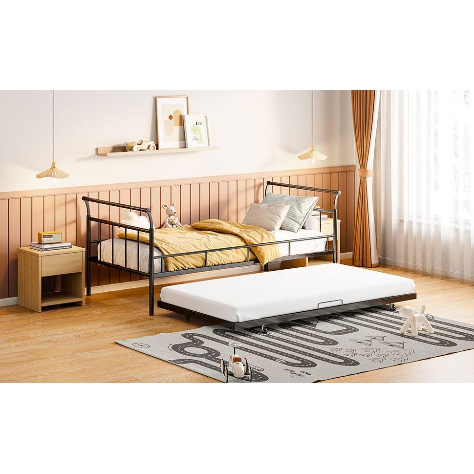 Twin Size Metal Daybed with Curved Handle Design and Twin Size Trundle, Black