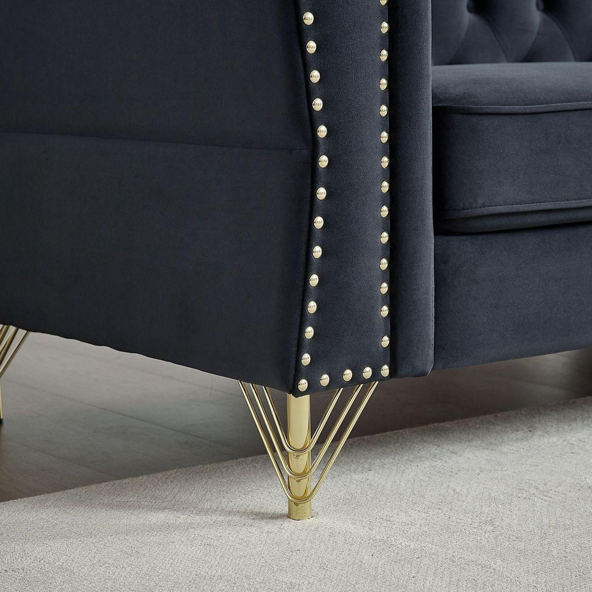 - Sturdy and durable. The frame of the sofa is made of solid wood for added sturdiness and durability. With comfortable foam, soft cushions supported by a curved spring structure and tufted buttons on the back and arms, this sofa is perfect for those who want to rest after a busy day.