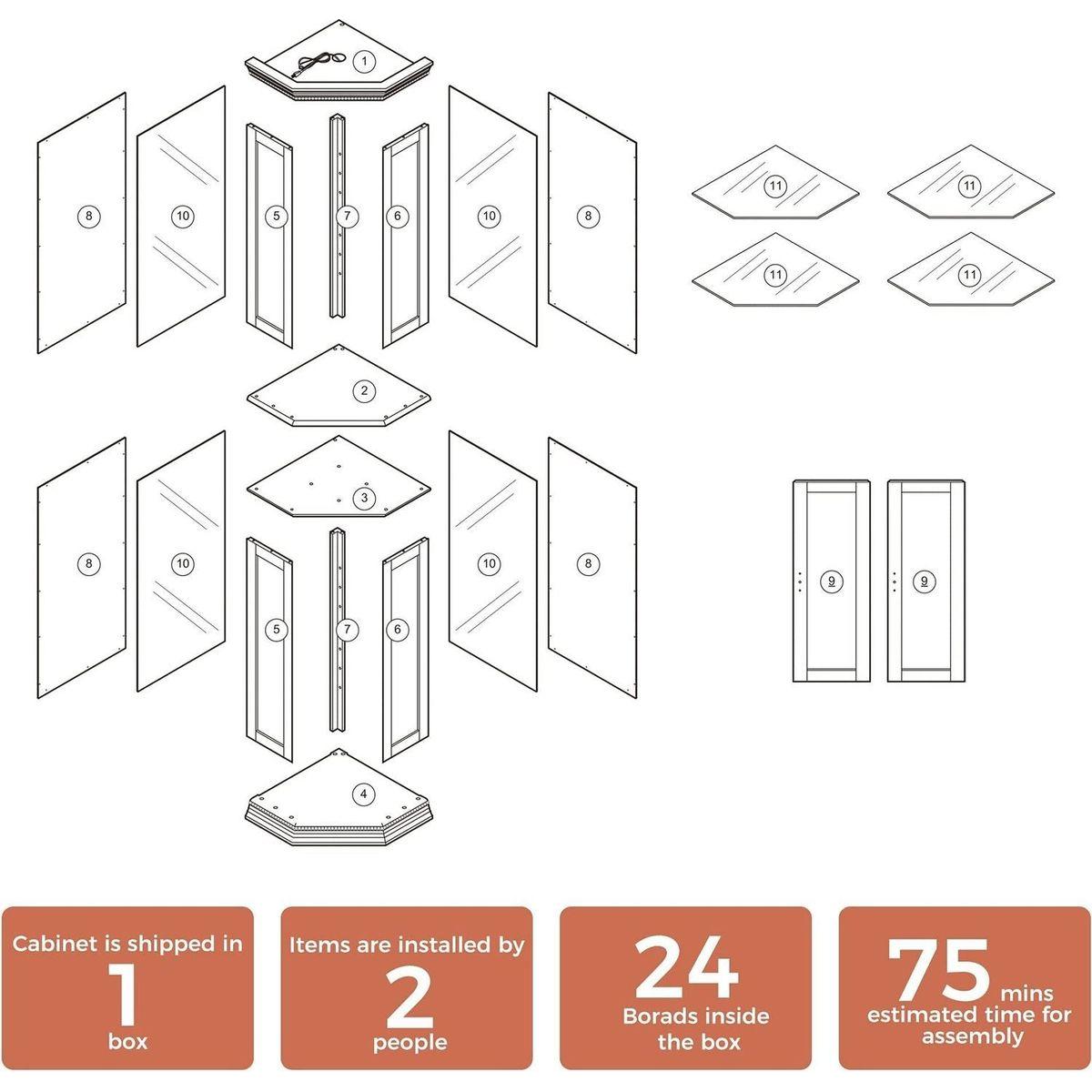 - Artistic and Utility: Corner curio cabinets have a grand and lavish appearance, paired with moderate storage capabilities. It's a perfect way to show off figurines, vintage books,fine china, or your other favorite mementos. Besides putting your treasures on display, it is a fabulous piece to enliven an empty corner.