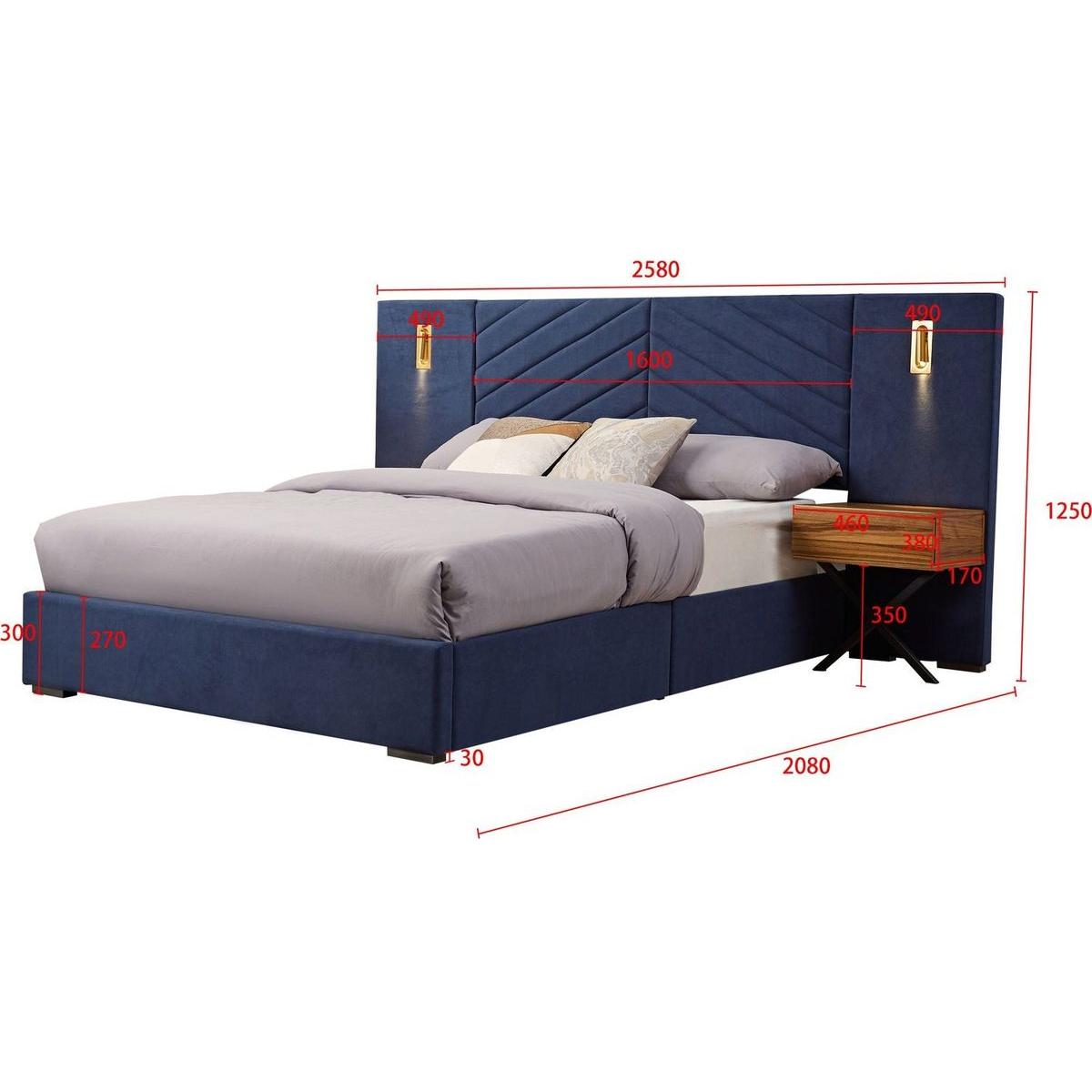 Queen Size Velvet Bed Frame/Vertical Channel Tufted Wingback Headboard/Upholstered Platform Bed/Strong Wooden Slats/No Box Spring Needed/Easy AssemblyRoyal blue