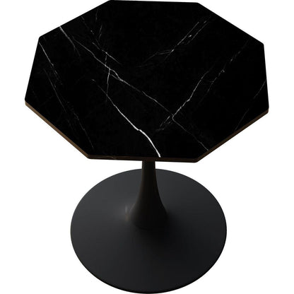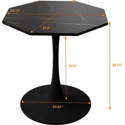 31.50"Modern Octagonal Coffee Table with Printed Black Marble Table Top,Metal Base, for Dining Room, Kitchen, Living Room