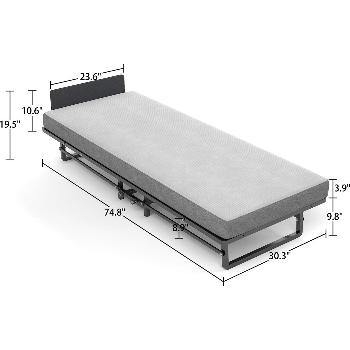 Metal Folding Bed Frame with Foam Mattress of Pockets, Easy Storage and Movable with 4 Castors