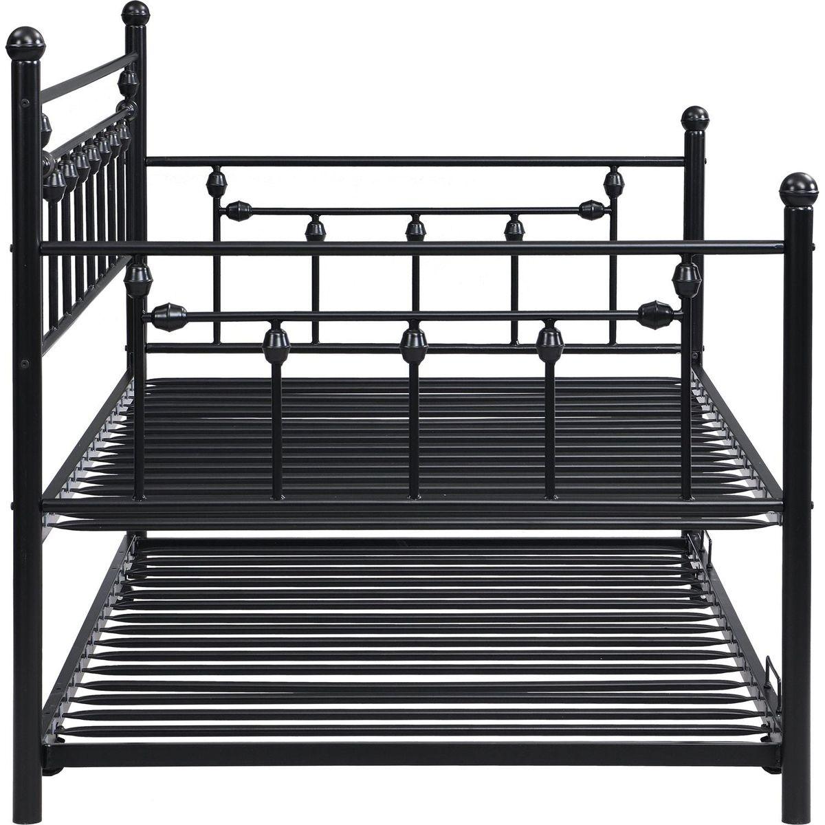 This bed frame provides a contemporary aesthetic and utilizes space efficiently. Its durable steel construction ensures stability and quiet use, while the easy assembly process with clear instructions and included tools makes it a breeze to set up. No box spring is required, and the frame supports mattresses of all types. With a weight limit of 250 350 LBS, this bed frame offers comfort and durability for a peaceful sleep.