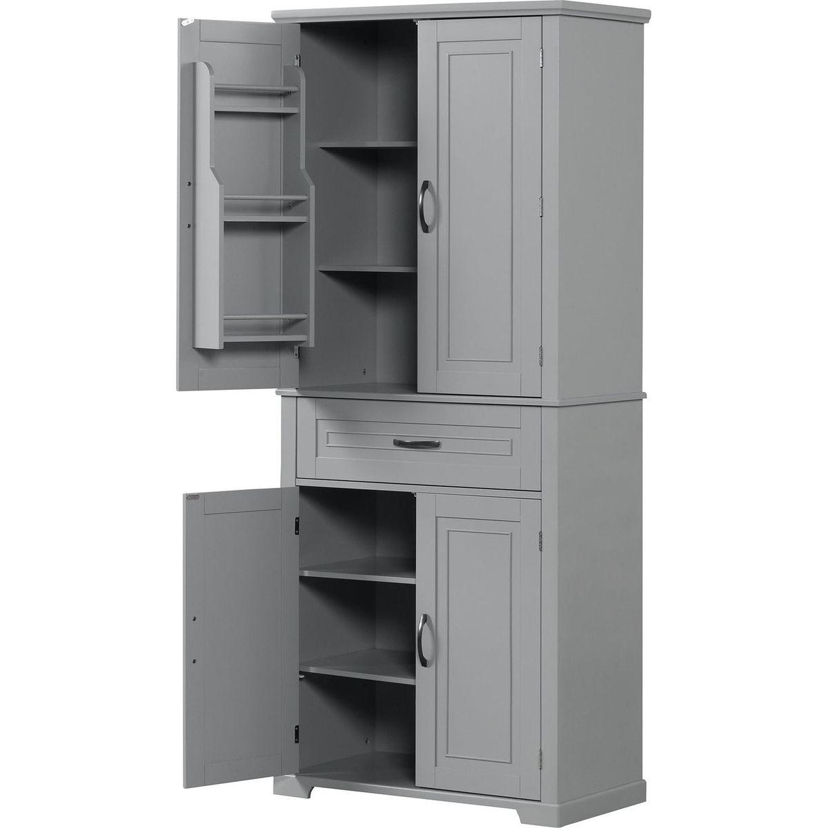 Bathroom Storage Cabinet with Doors and Drawer, Multiple Storage Space, Adjustable Shelf, Grey