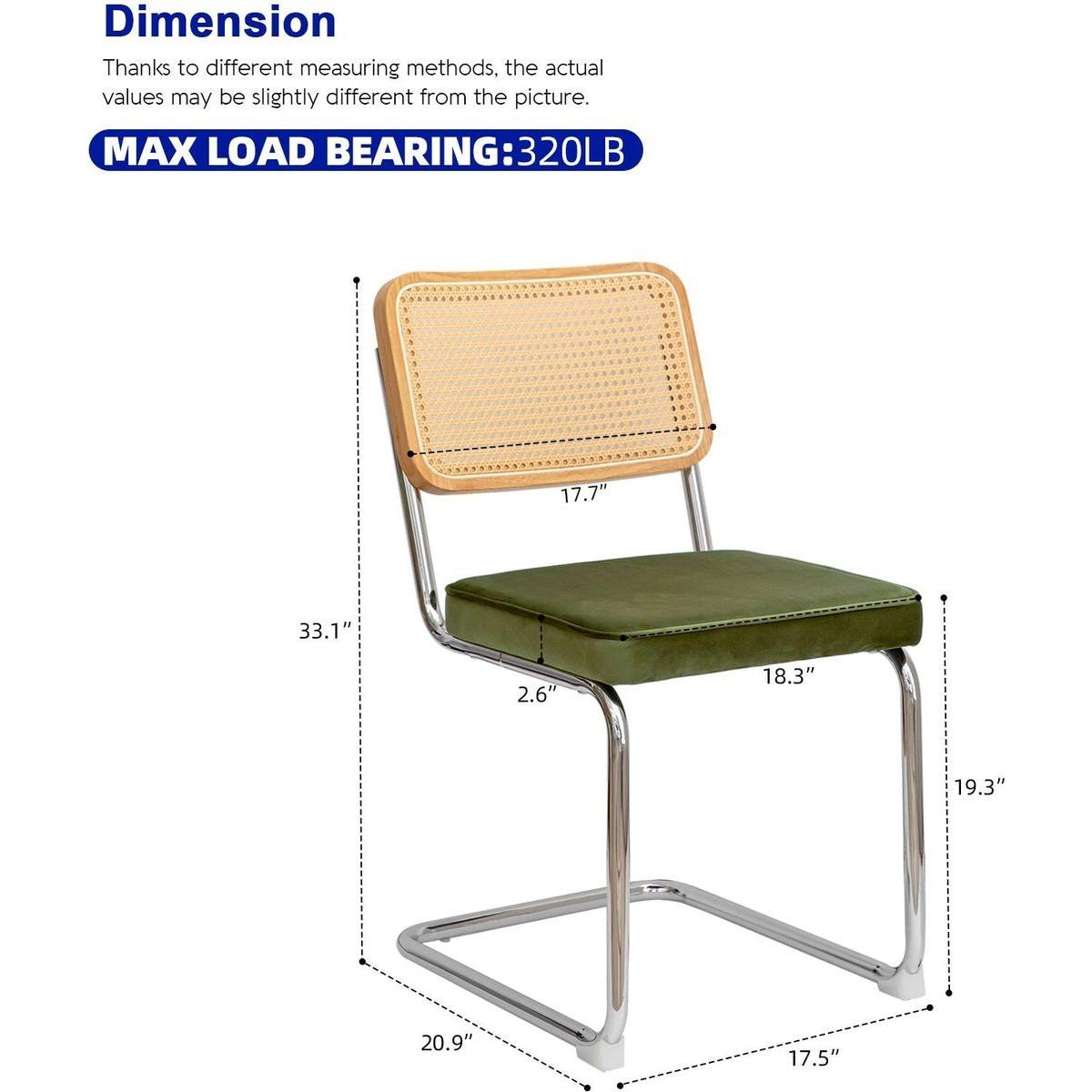 Dining Chairs Set of 2, Velvet Rattan Side Accent Chairs with Chrome Legs, Modern Mid Century Breuer Designed Chairs, Upholstered Dining Living Room Kitchen Chairs (Olive Green-2pcs)