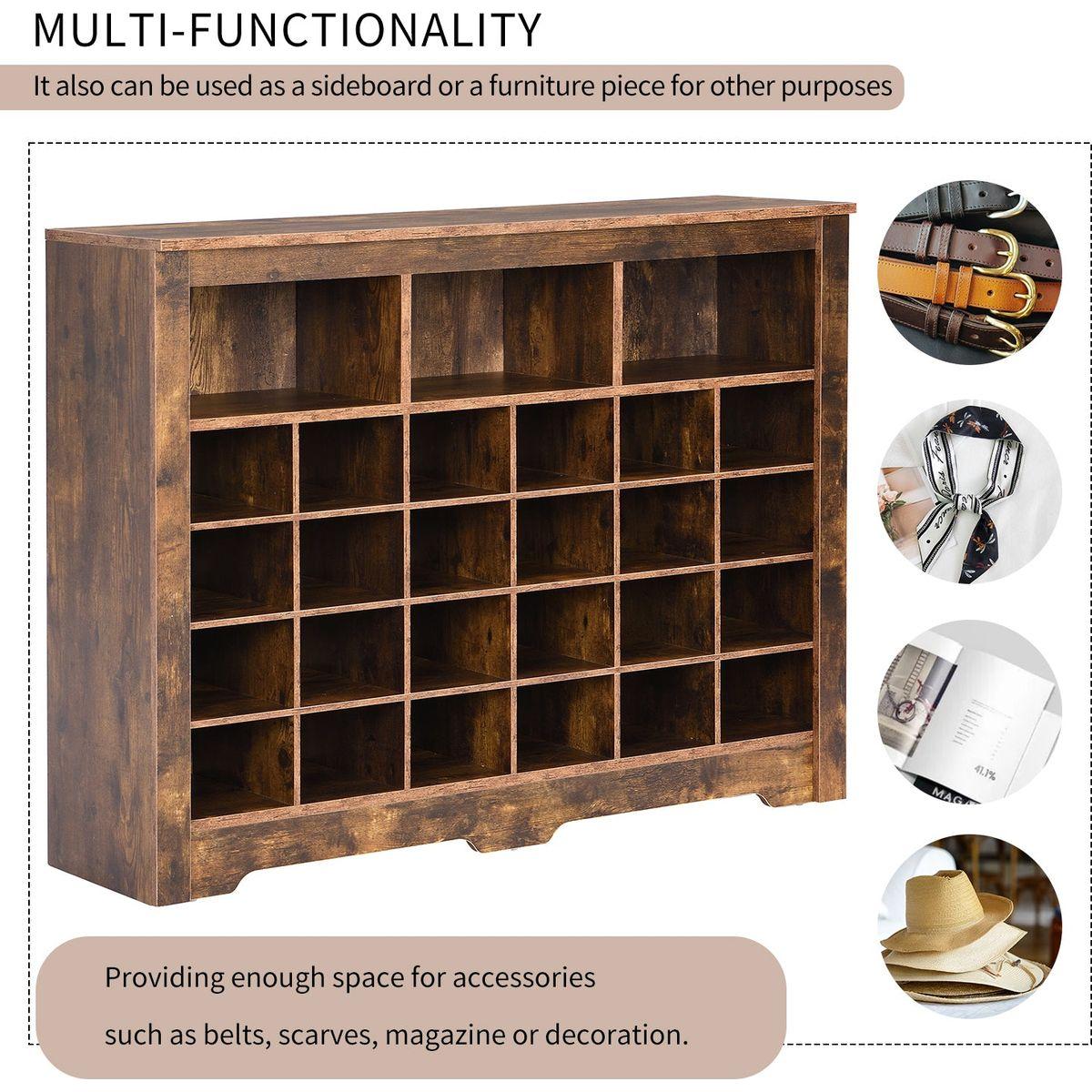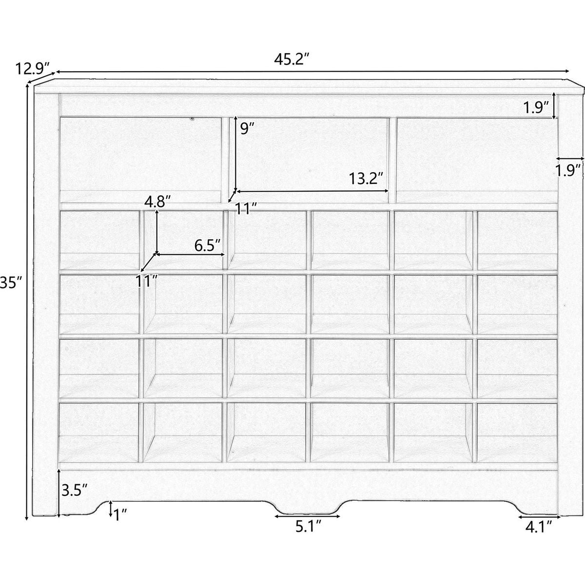 - The cabinet is divided into 24 small cubbies, each designed to hold a single pair of shoes, ensuring that your shoes are neatly organized and easily accessible.