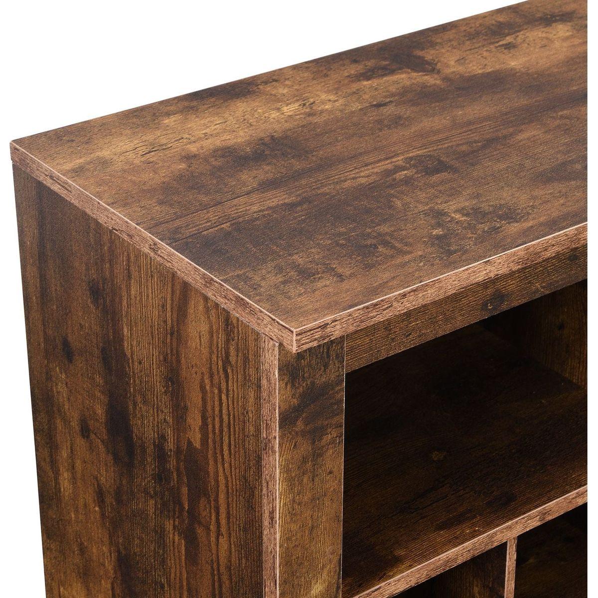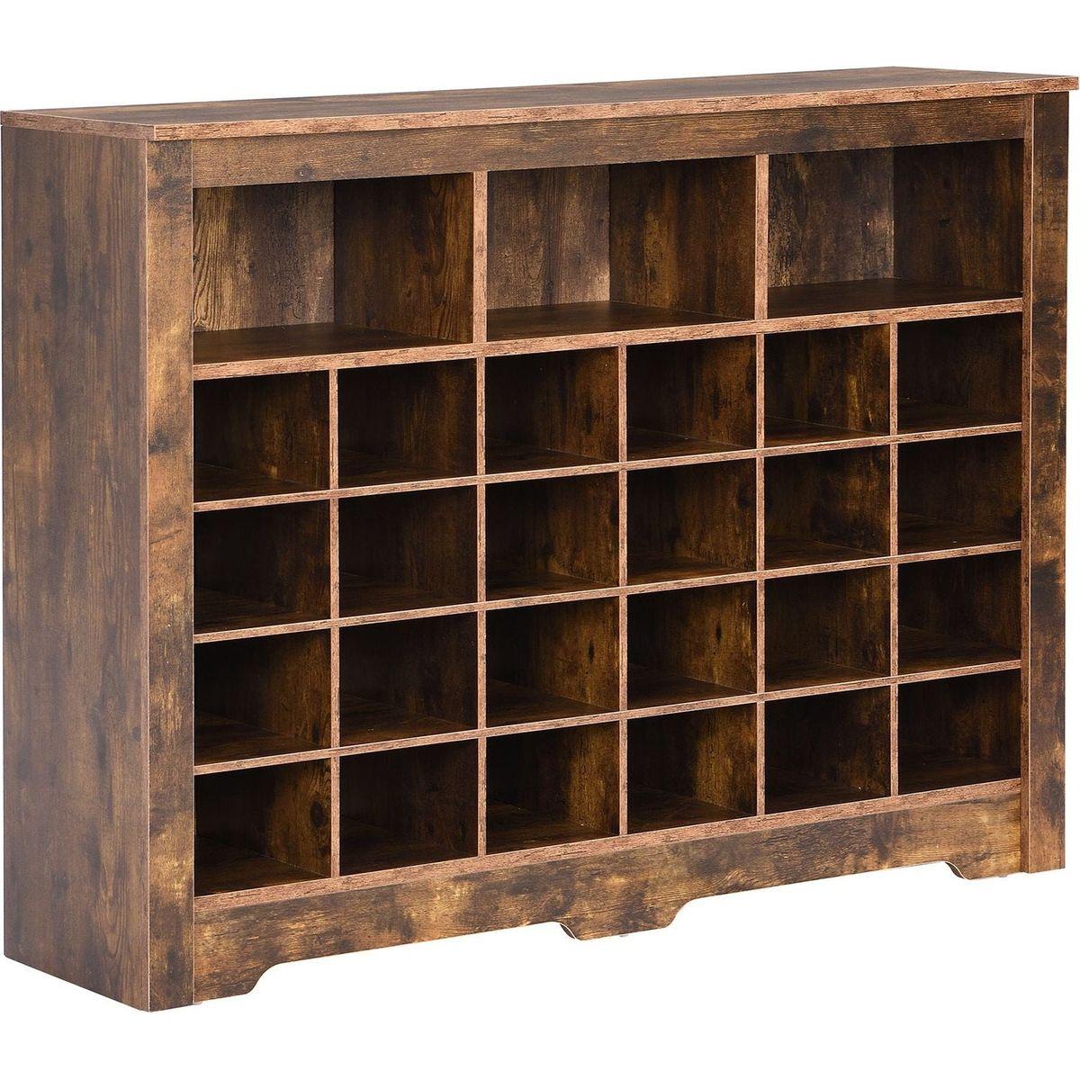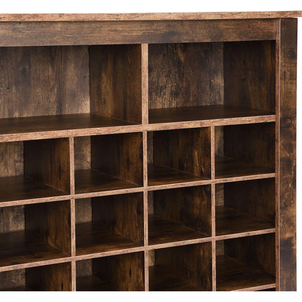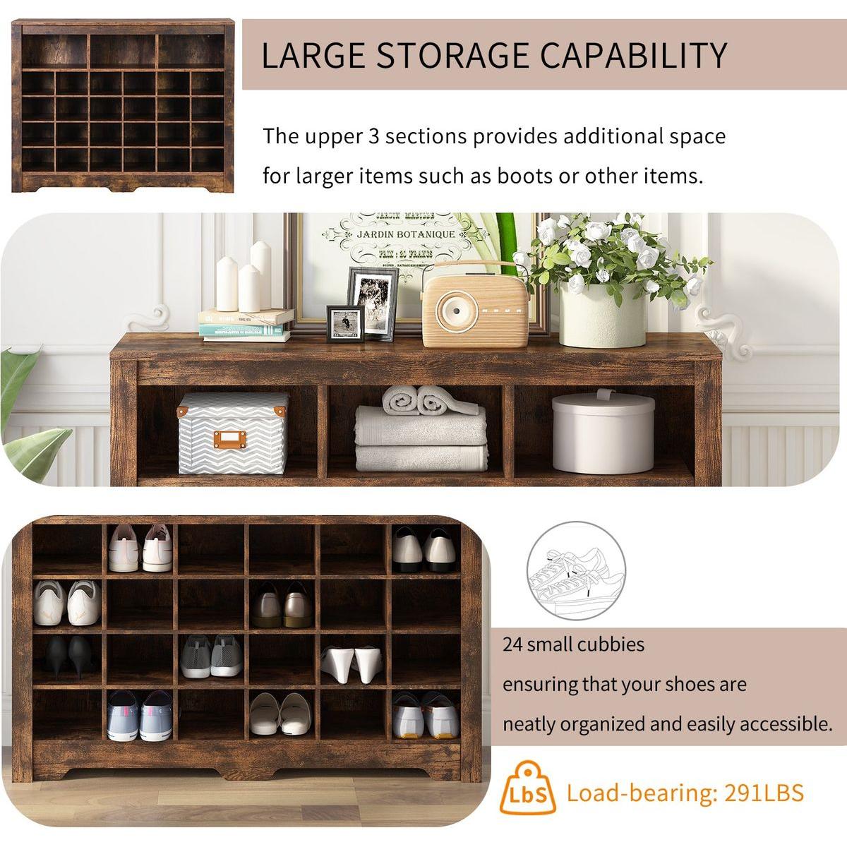 Sleek Design 24 Shoe Cubby Console, Modern Shoe Cabinet with Curved Base, Versatile Sideboard with High-quality for Hallway, Bedroom, Living Room, Rustic Brown