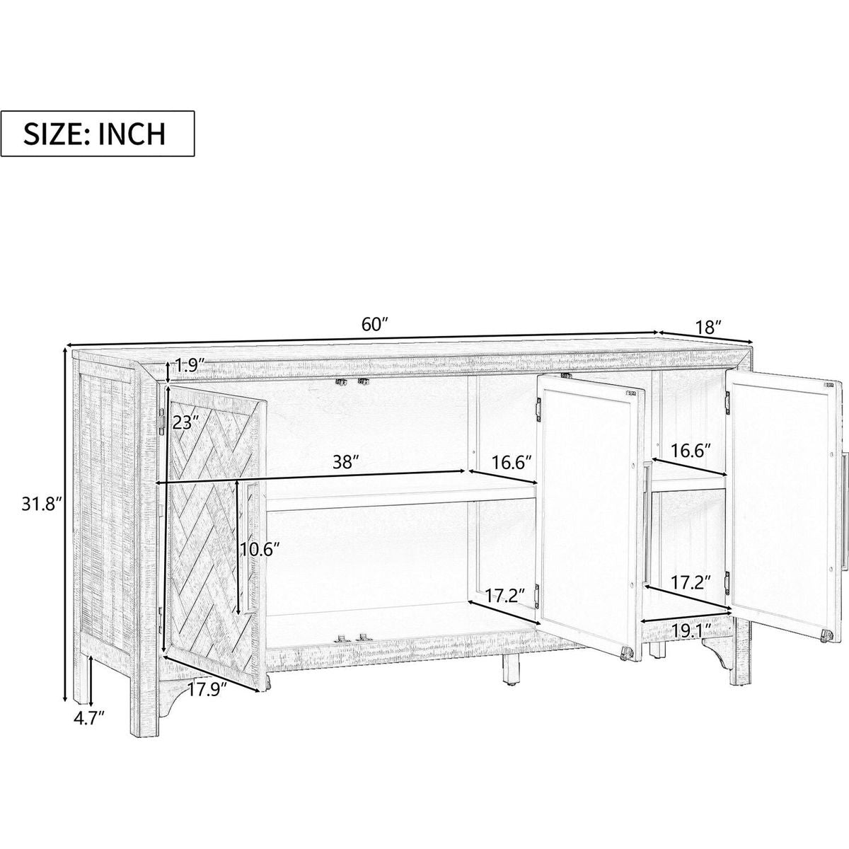Designed Storage Cabinet Sideboard with MDF+Pine veneer, Adjustable Shelves, Suitable for Living Rooms, Entrance and Study Rooms.