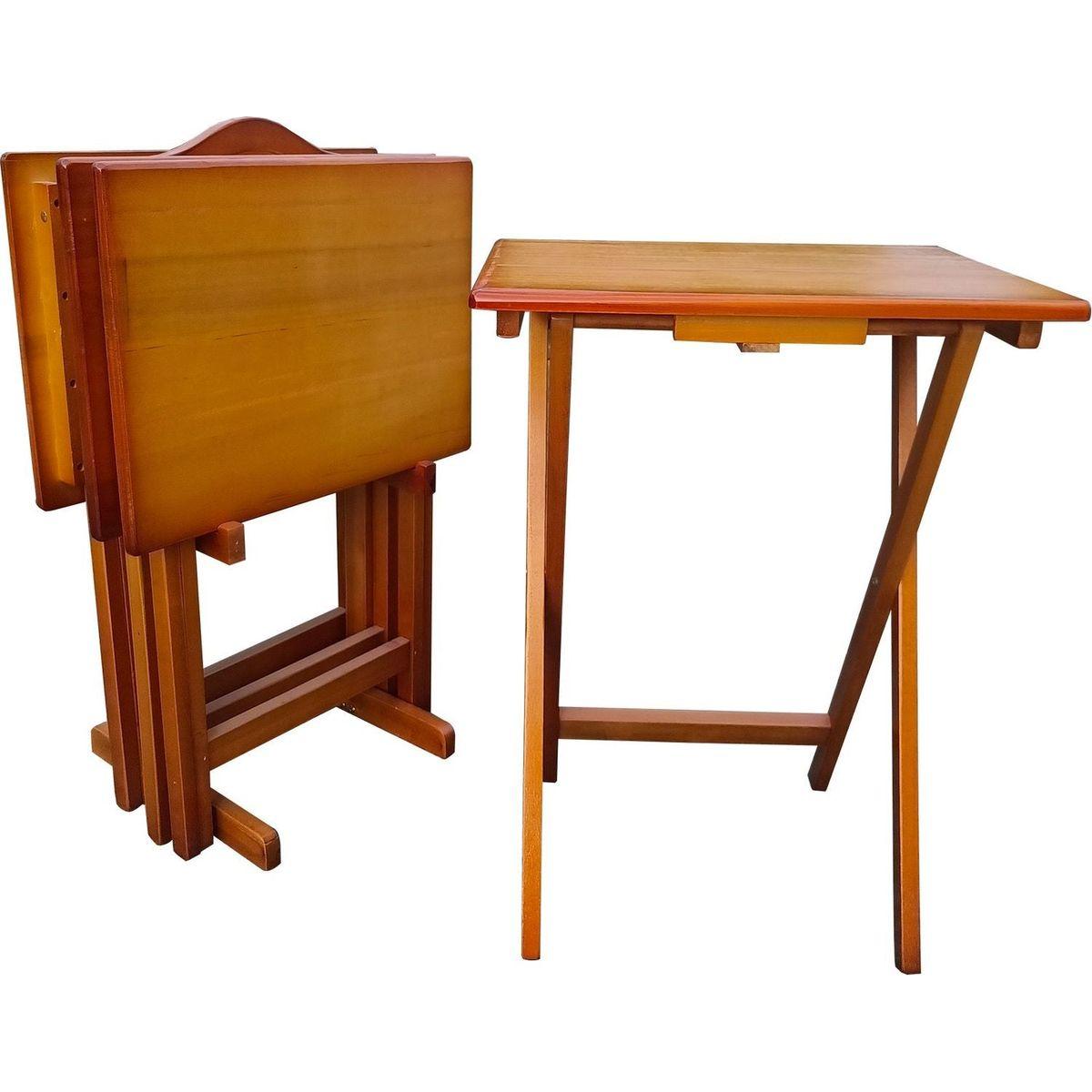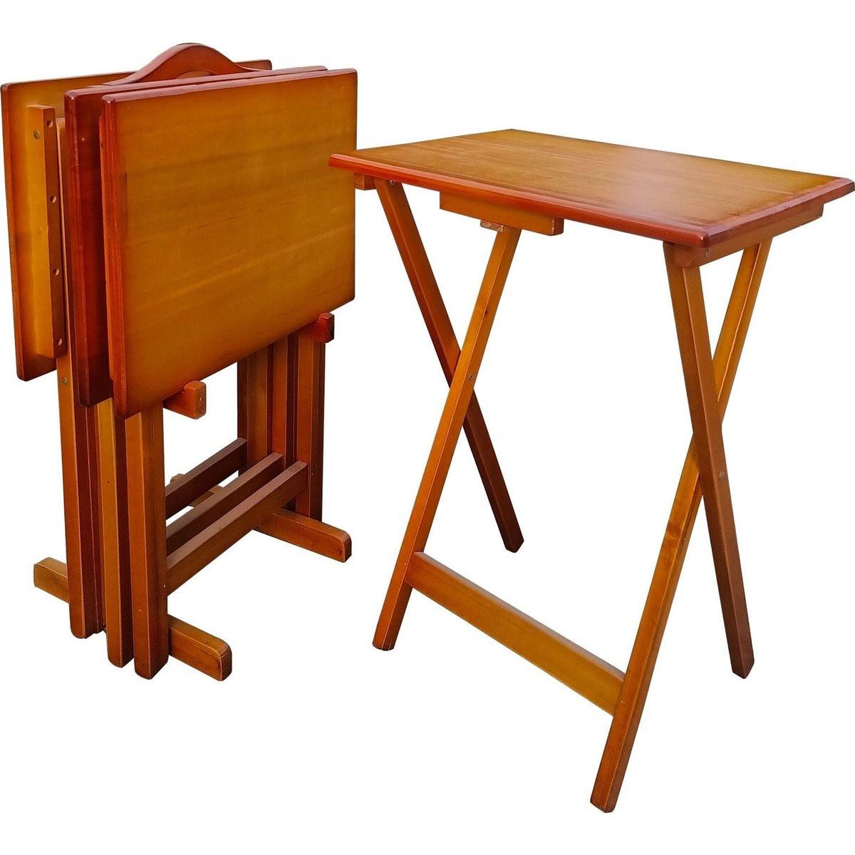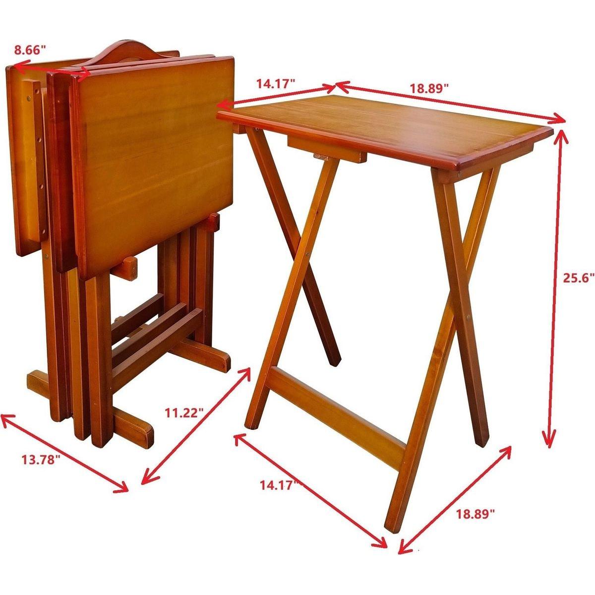 Folding Trays with Storage Rack,Snack Table - Set of 4,honey