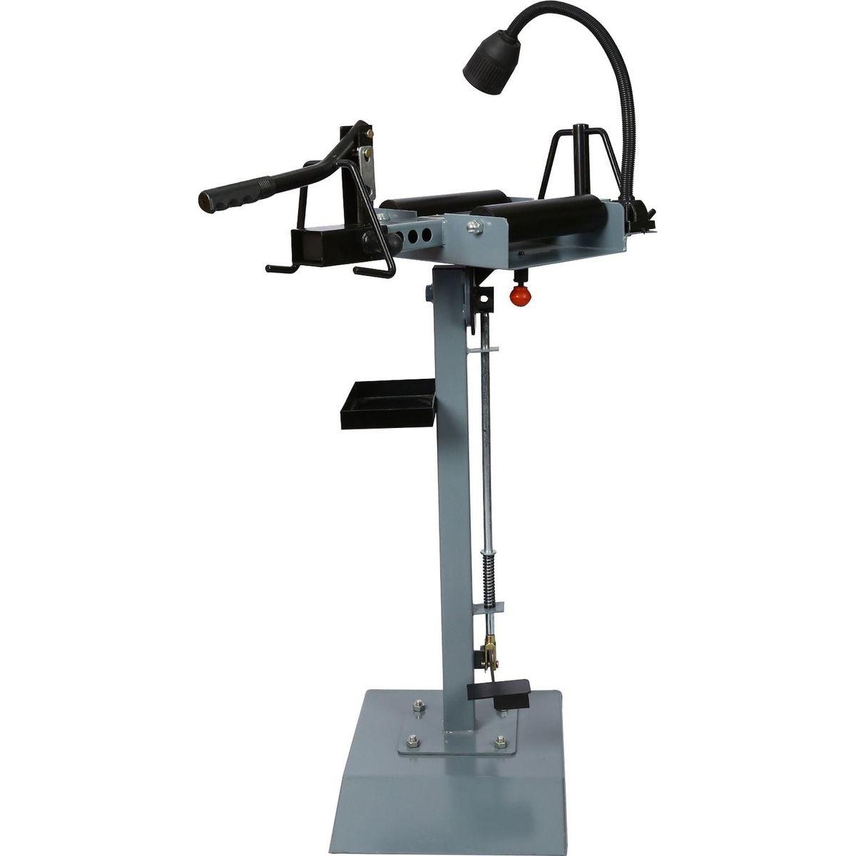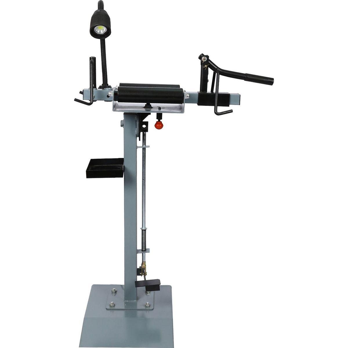 Designed to simplify tire repairs while accommodating various tire sizes, this manual tire spreader boasts an adjustable LED light, 360° swivel platform, and 90° maximum tilt angle, making it a valuable tool for any repair professional.