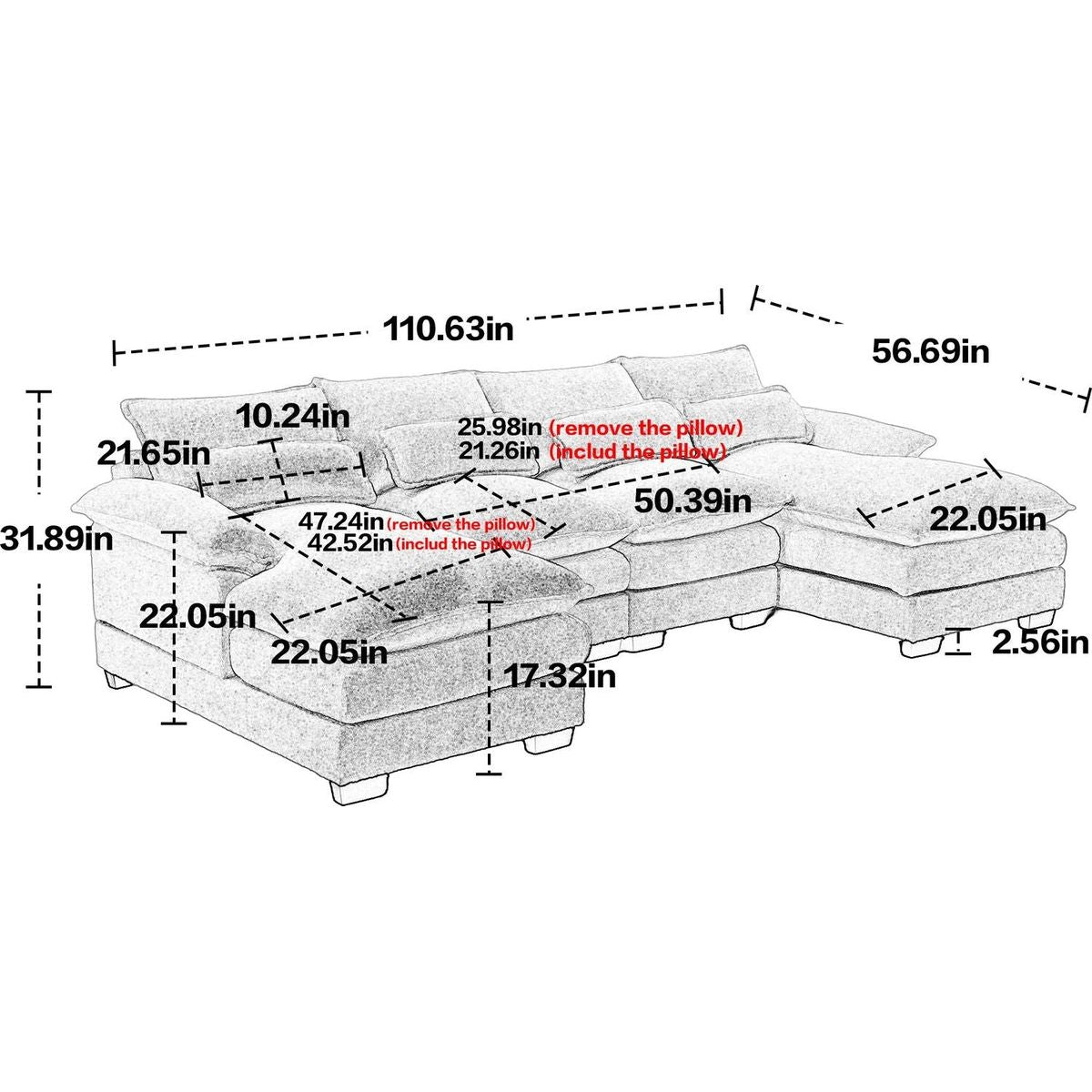 Modern Large chenille Fabric U-Shape Sectional Sofa