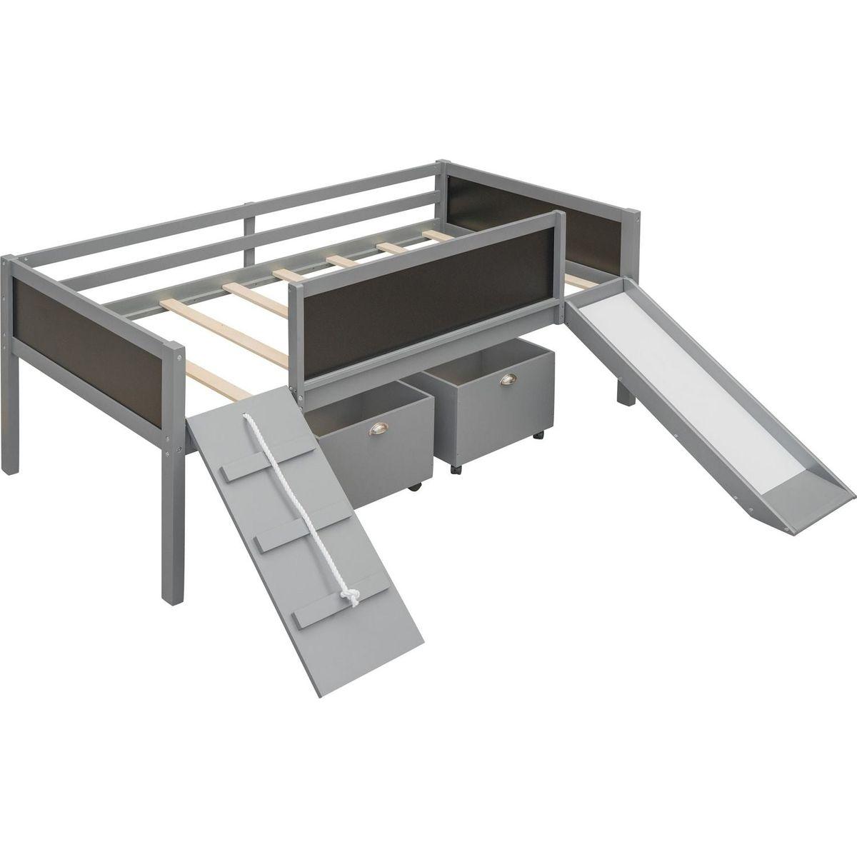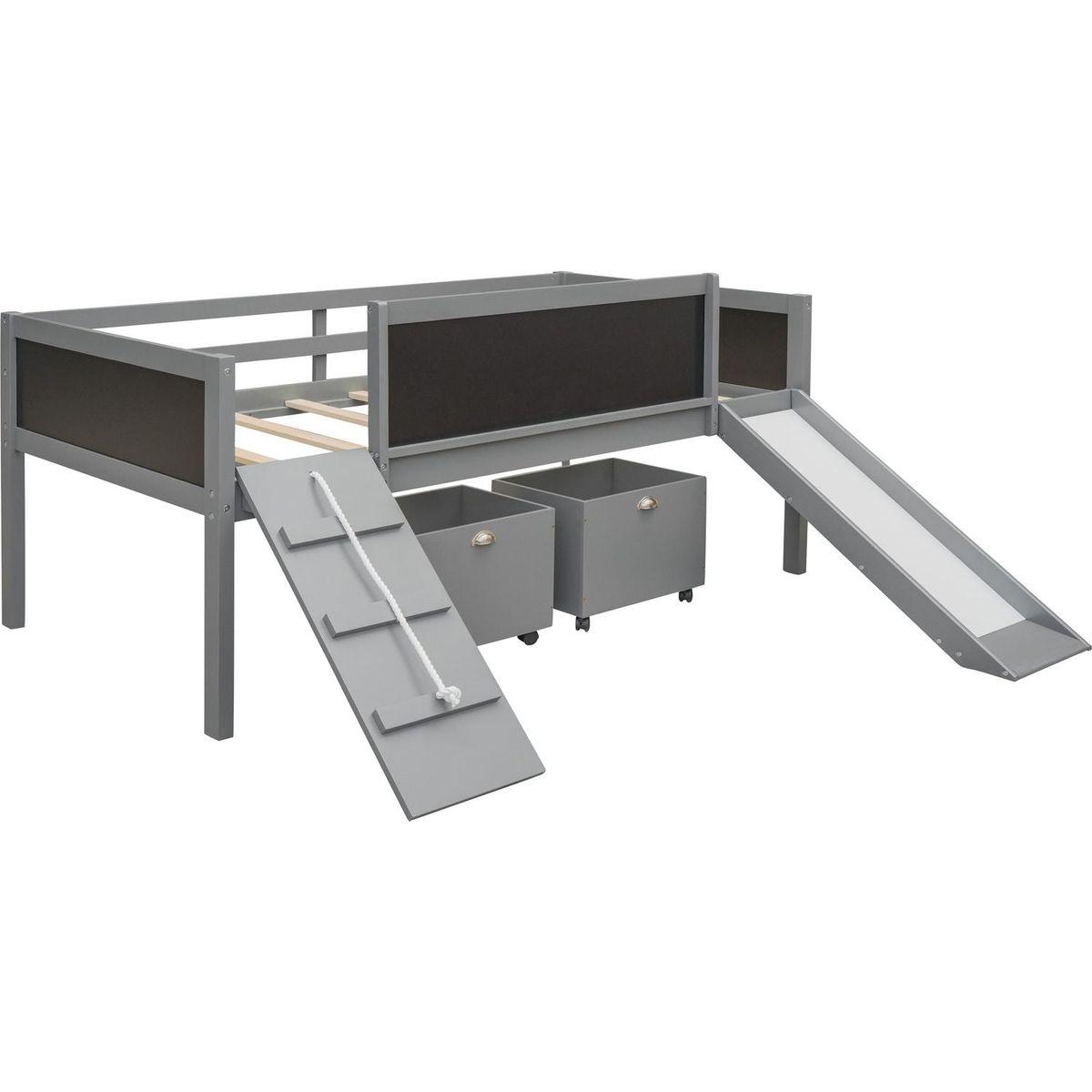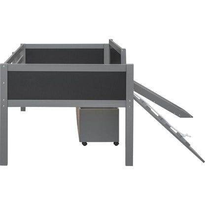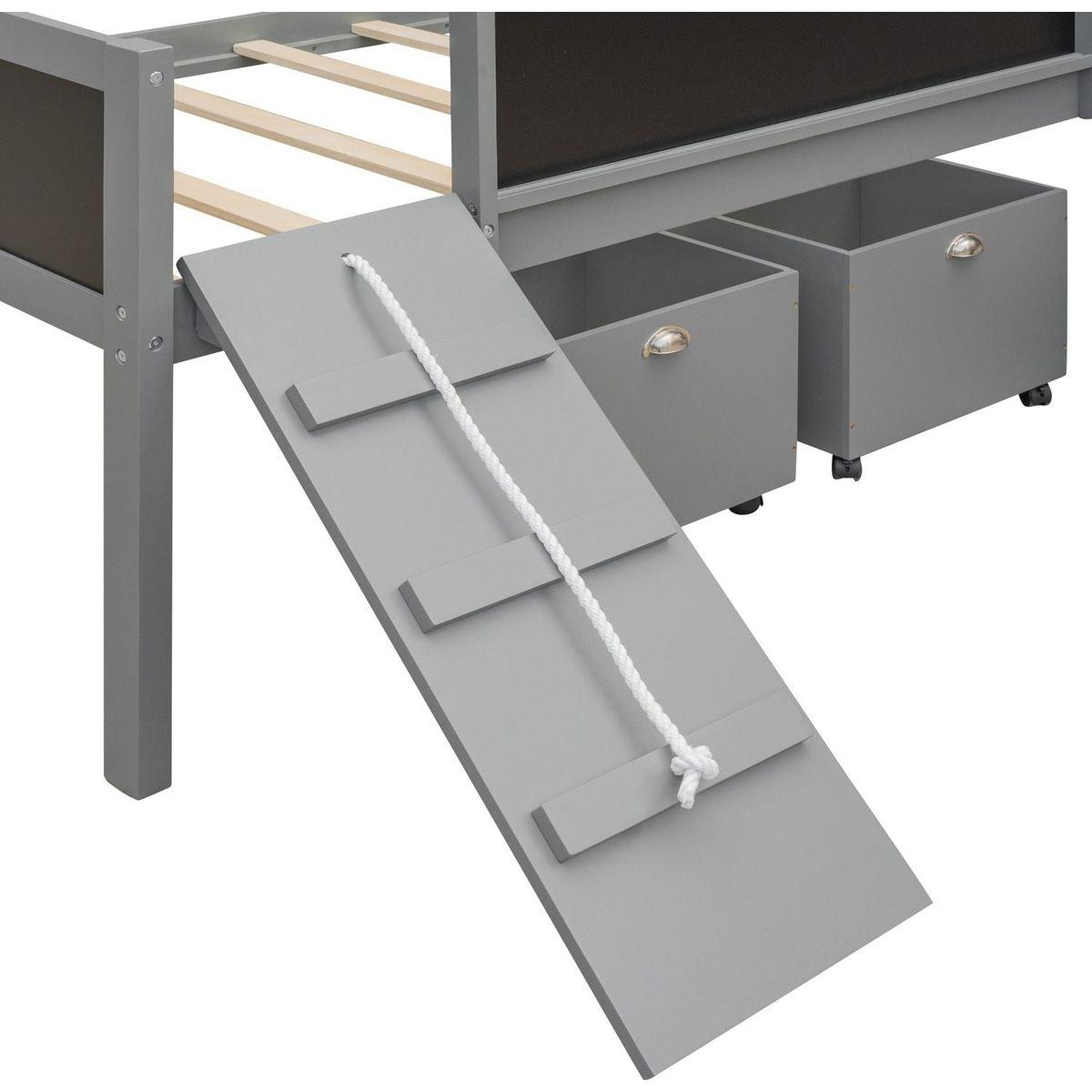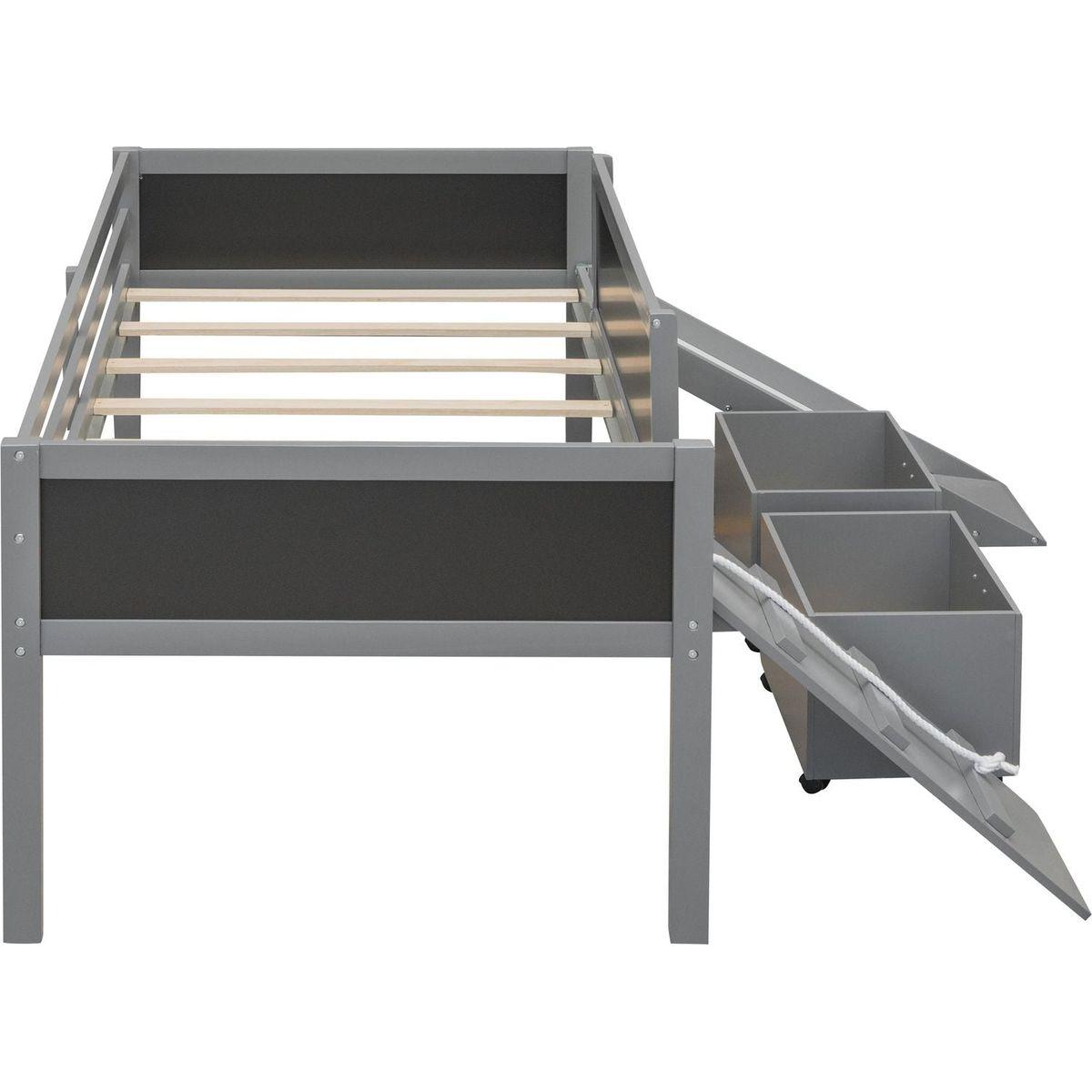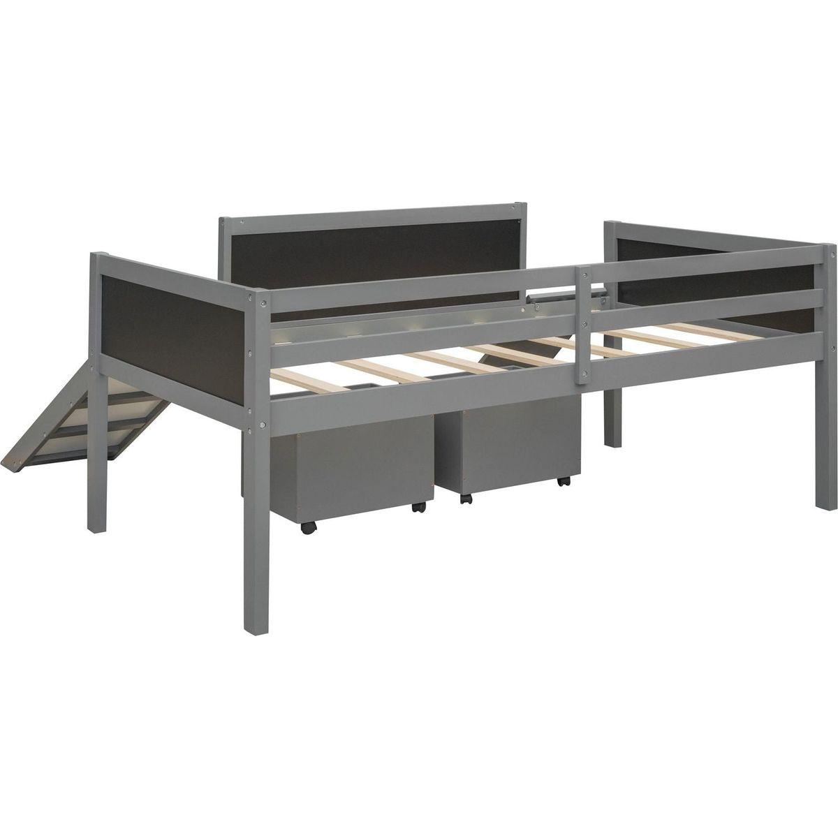 Twin size Loft Bed Wood Bed with Two Storage Boxes - Gray ()