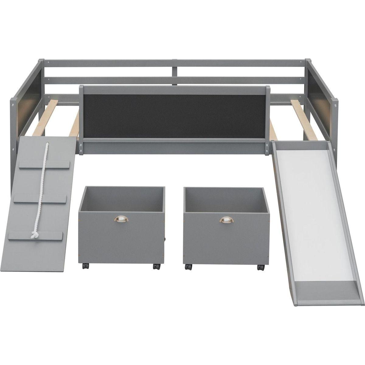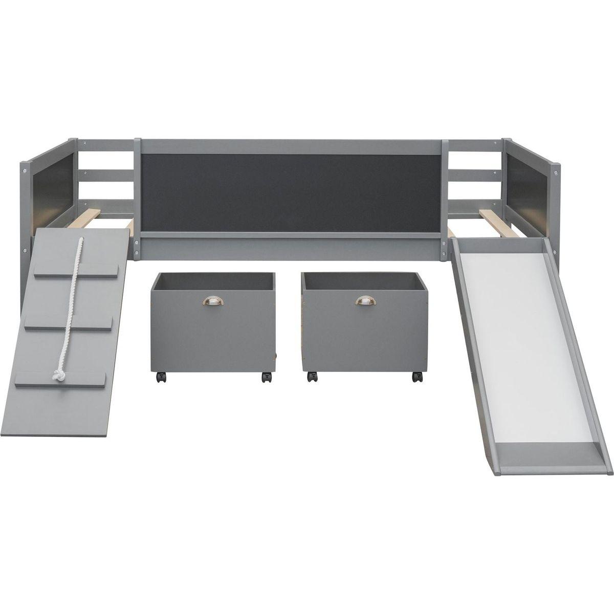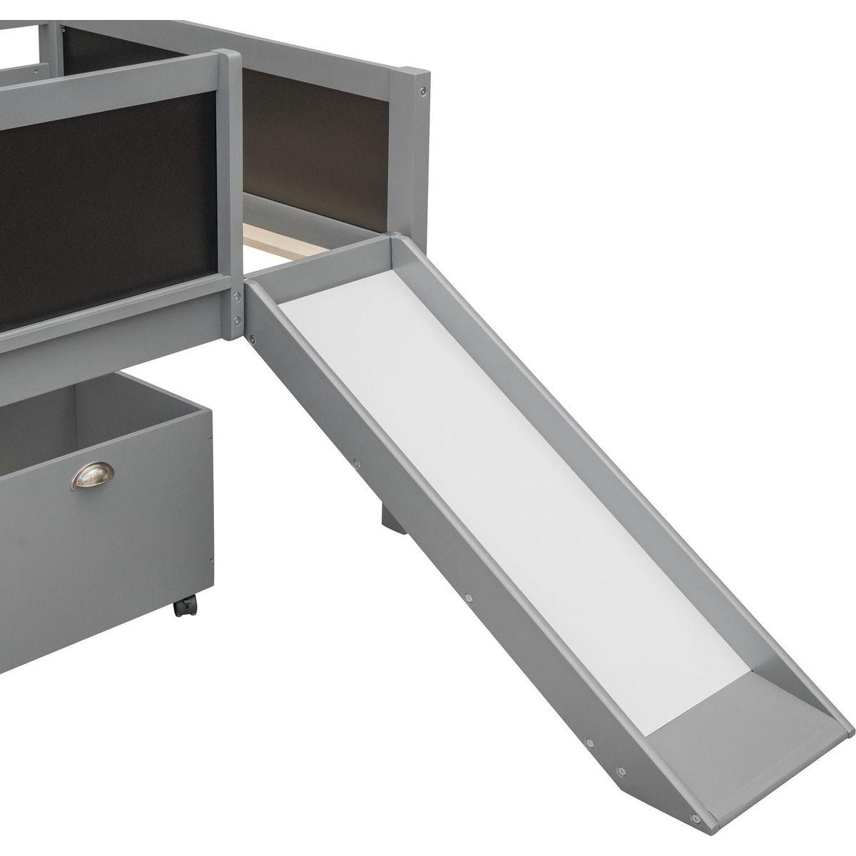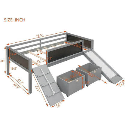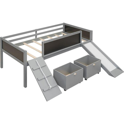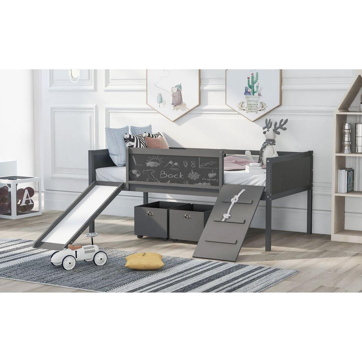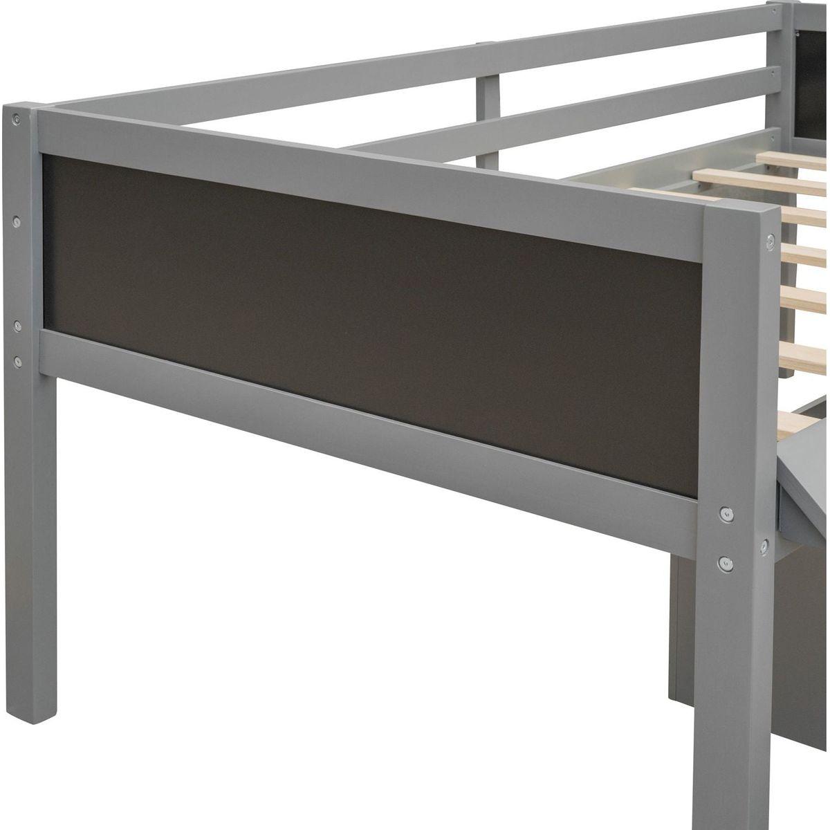 Twin size Loft Bed Wood Bed with Two Storage Boxes - Gray ()