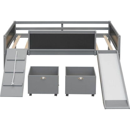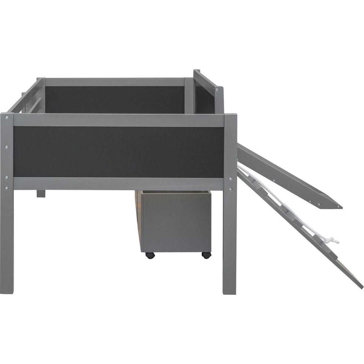 A novel idea be put into design when manufacturing this marvelous loft bed, a ladder be exchanged to a climbing frame which appealed to most people much more. And the way to get out of bed is sliding. This interesting design loft bed offer the chance to train your physical coordination in daily life and push them gain more happiness in bedroom. The double-sided chalkboard set on three sides allow you use your imagination and creativity at any time, and stimulate the potential of your brain. Additional storage boxes is another shining idea in design as they are great useful and helpful tools for parents. The open design storage boxes are the perfect space to store all sorts of toys and daily necessities. Four classic colors make you can choose your favorite color freely.