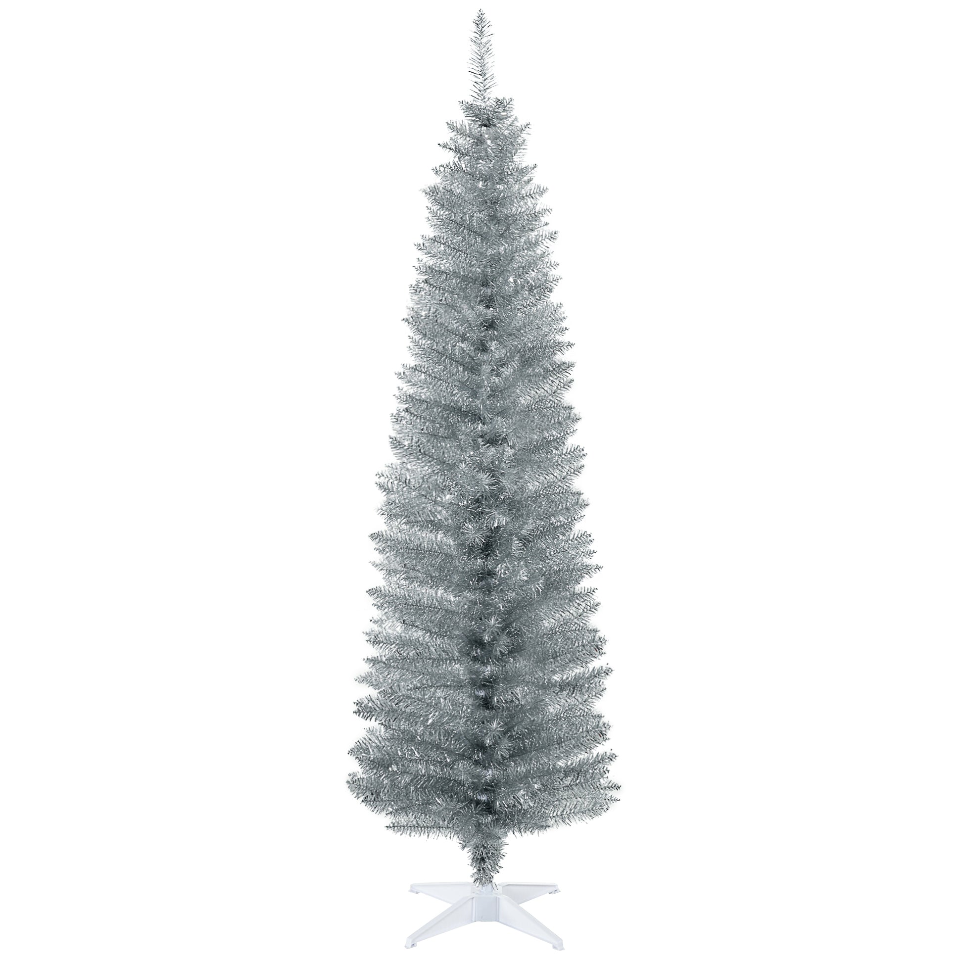 HOMCOM 6' Artificial Pencil Christmas Tree, Slim Xmas Tree with 390 Realistic Branch Tips and Plastic Stand, Silver