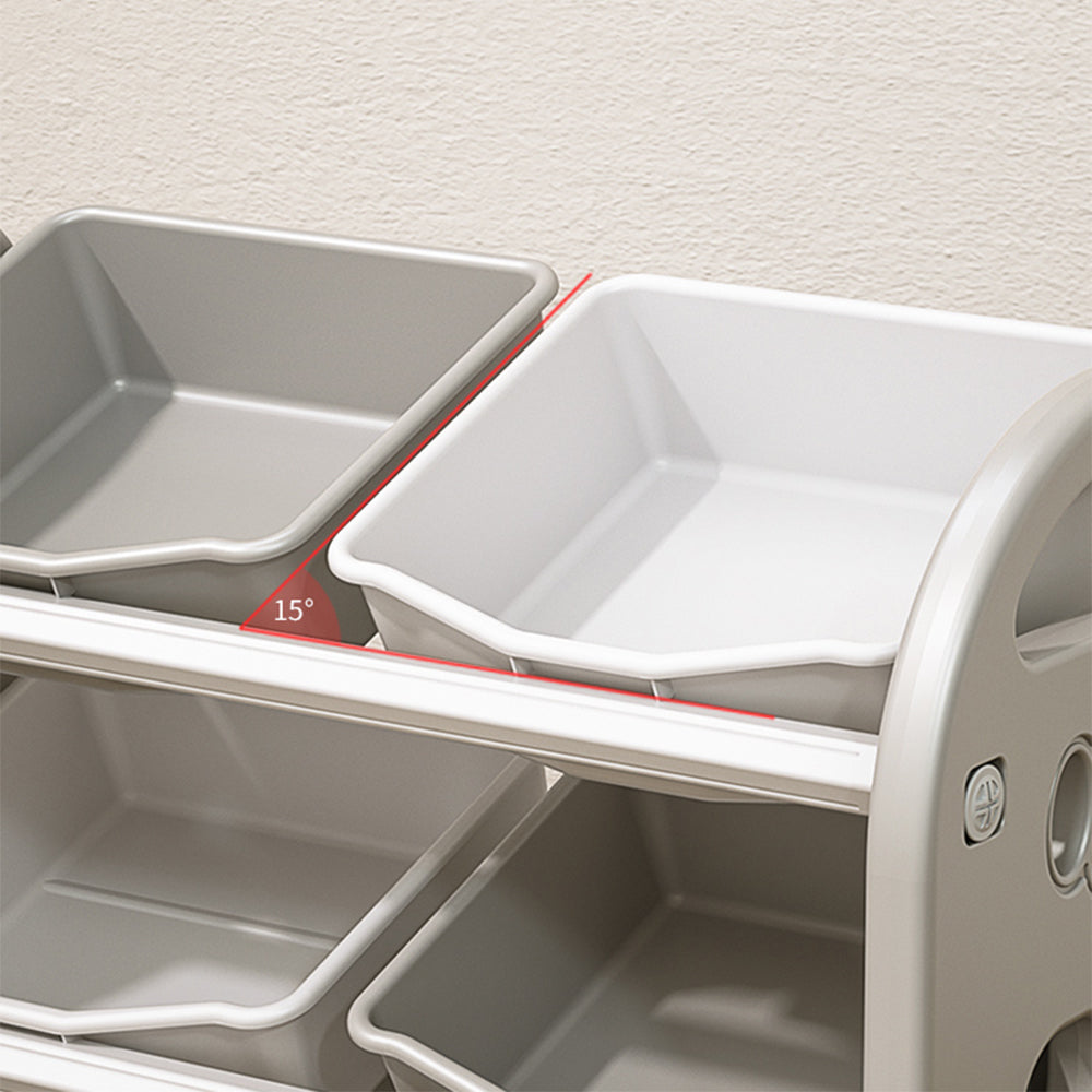 Kids Toy Storage Organizer with 6 Bins, Multi-functional Nursery Organizer Kids Furniture Set Toy Storage Cabinet Unit with HDPE Shelf and Bins for Playroom, Bedroom, Living Room (Grey Color)
