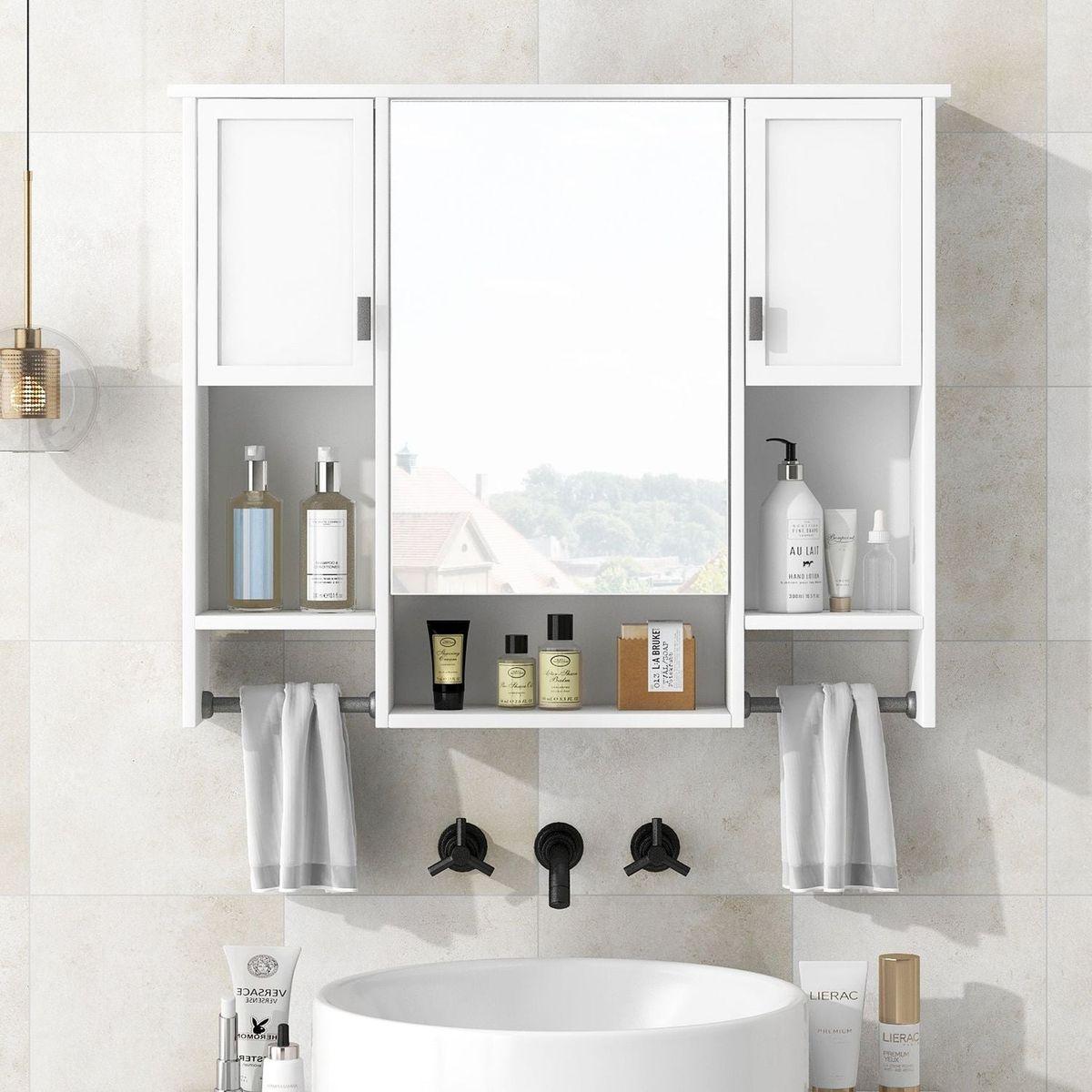 35" x 28" Modern Wall Mounted Bathroom Storage Cabinet, Bathroom Wall Cabinet with Mirror, Medicine Cabinet with Towels Bar