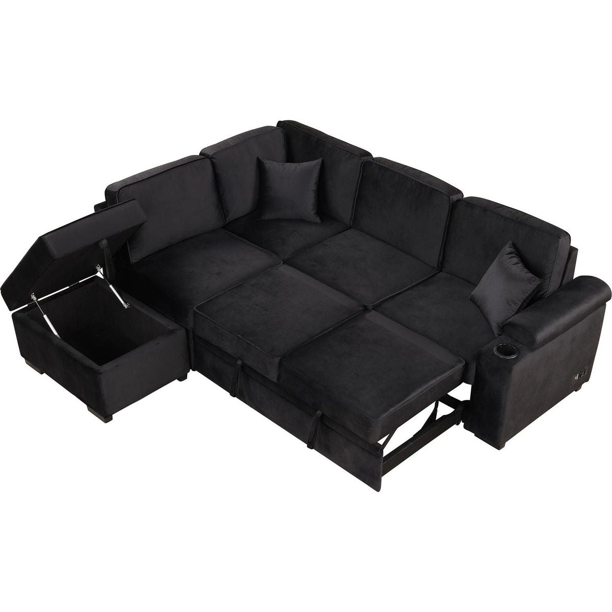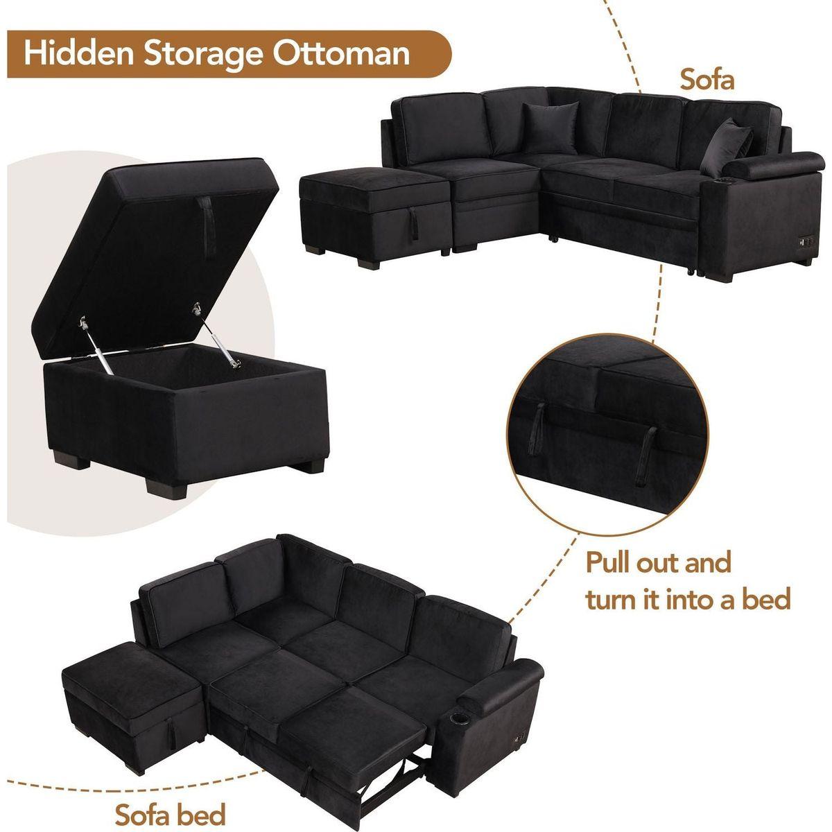 87.4" Sleeper Sofa Bed,2 in 1 Pull Out sofa bed L Shape Couch with Storage Ottoman for Living Room,Bedroom Couch and Small Apartment, Black