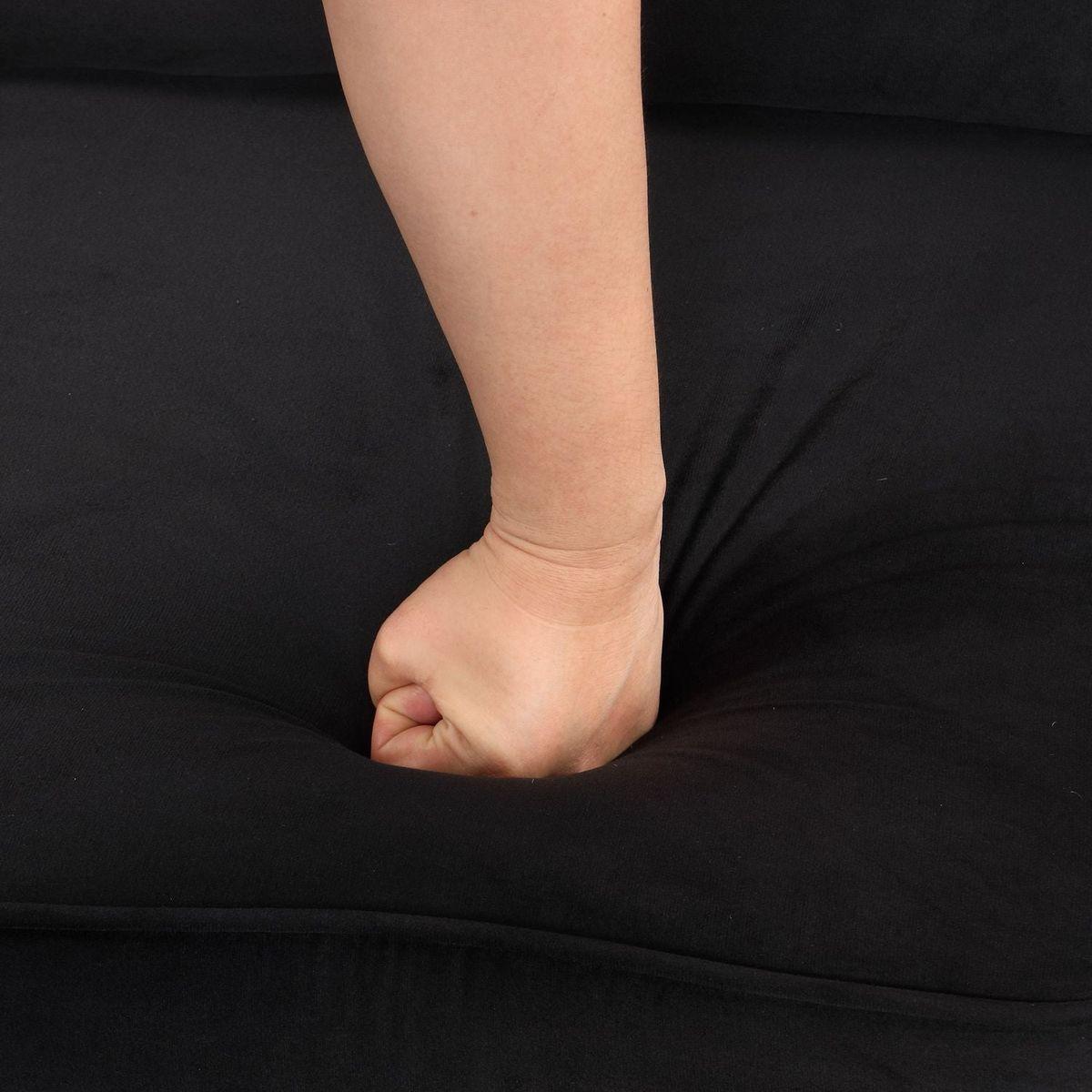 This sofa bed is the perfect furniture solution for both style and functionality. At first glance, its plush velvet upholstery and square arm design add a touch of elegance to any room. But the true beauty lies in its versatility. With just a pull, it transforms into a comfortable sofa bed, providing an unexpected haven for guests. Additionally, the hidden storage ottoman keeps clutter under control, making it a practical choice for any home. The durable plywood frame and ample weight capacity ensure years of reliable use. The 60-minute assembly process is a breeze, and professional cleaning ensures it stays looking its best. Whether for lounging, sleeping, or storing, this sofa bed is a 5-star investment that will elevate any living space.