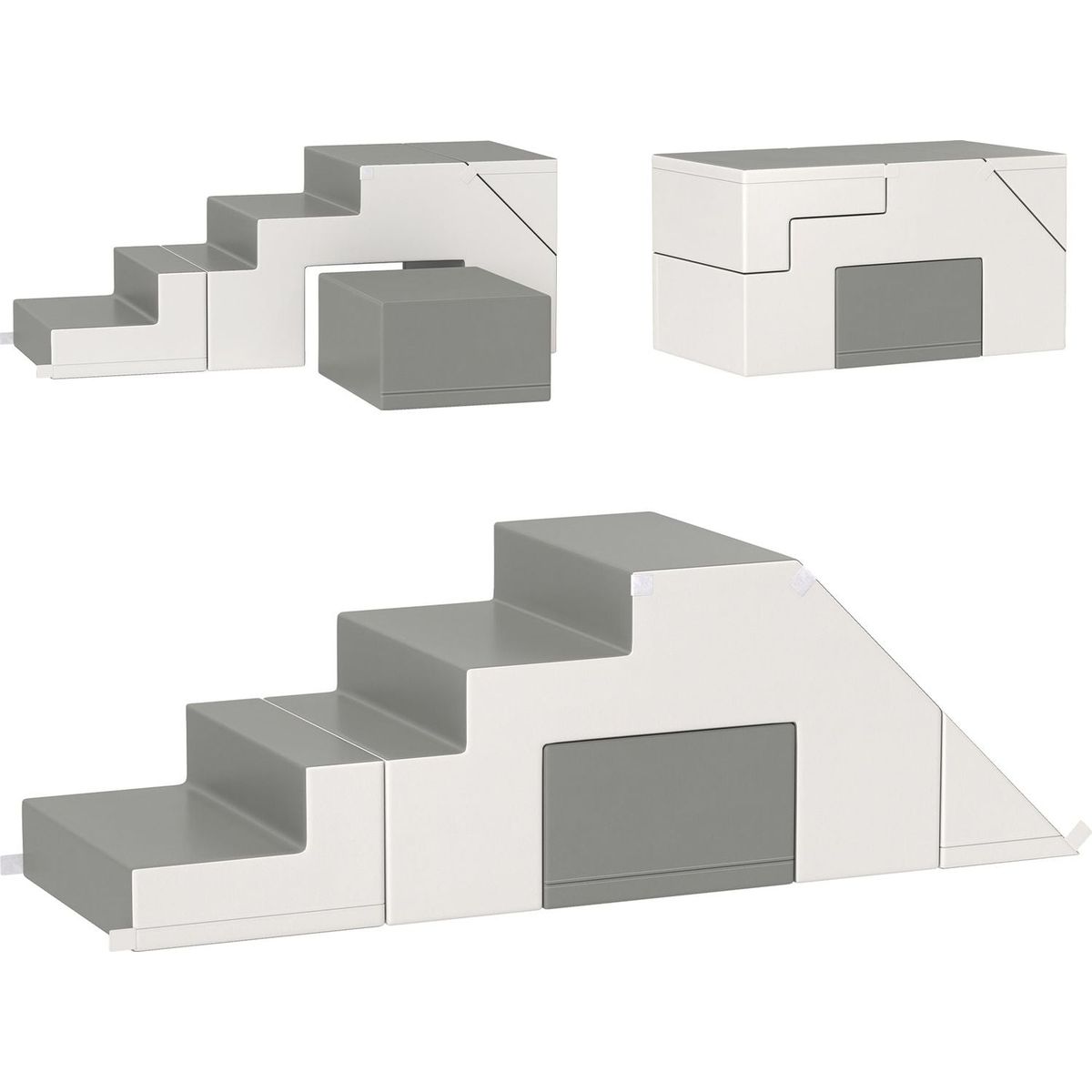 Qaba Foam Play Set for Toddlers and Children, Easy-to-clean 2 Piece Soft & Safe Kids Climbing Set for Crawling or Sliding, Light Gray