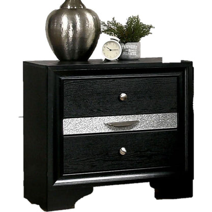 Contemporary 1pc Nightstand Black Finish Silver Accents Hidden Jewelry Drawer Nickel Round Knob Bedside Table Bedroom Furniture