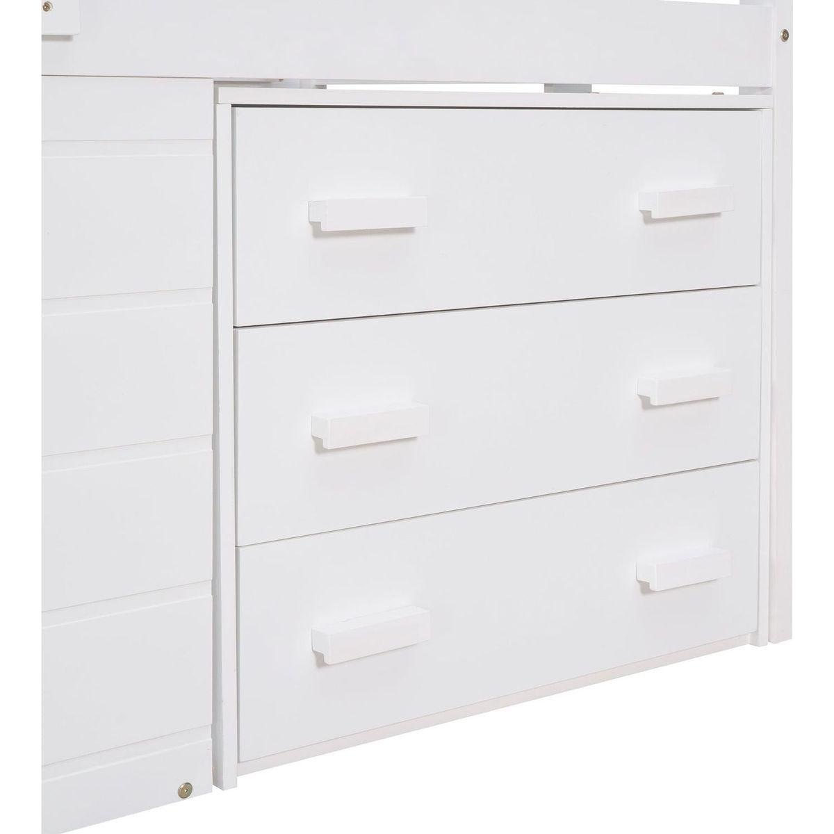 Twin Size Loft Bed with Cabinet and Shelf - White