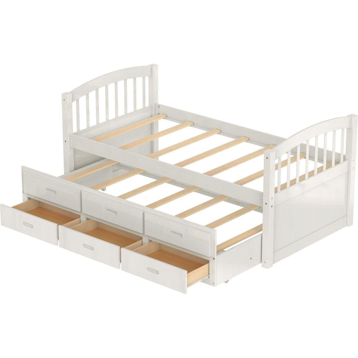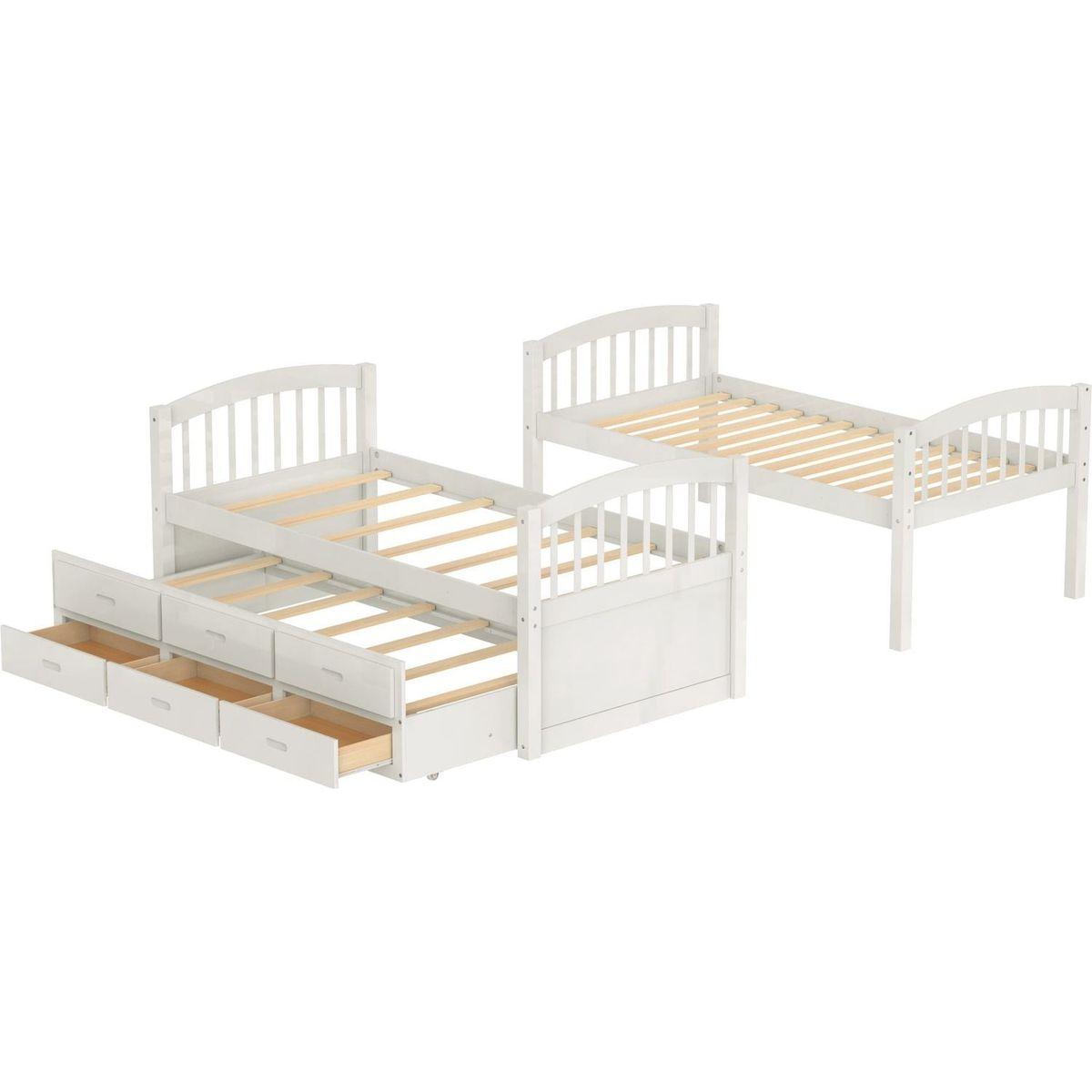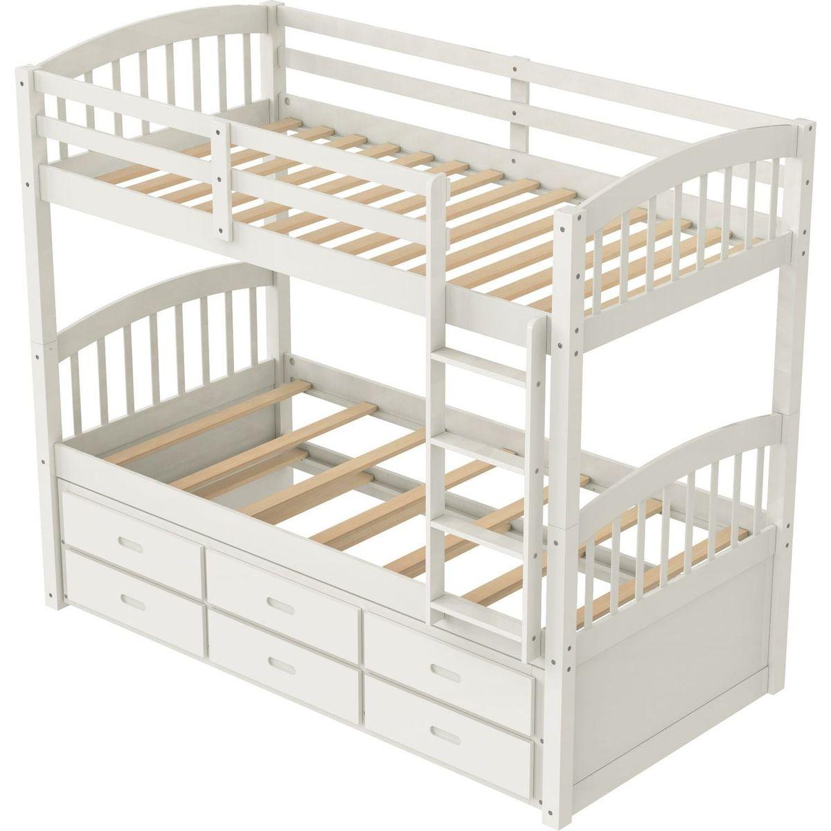 Twin over Twin Wood Bunk Bed with Trundle and Drawers, White