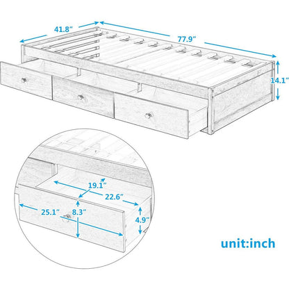 ✔Twin Bed Frame With Drawers, Constructed from high quality solid pinewood , Standard twin size bed fits standard twin size mattress (Mattress not included)