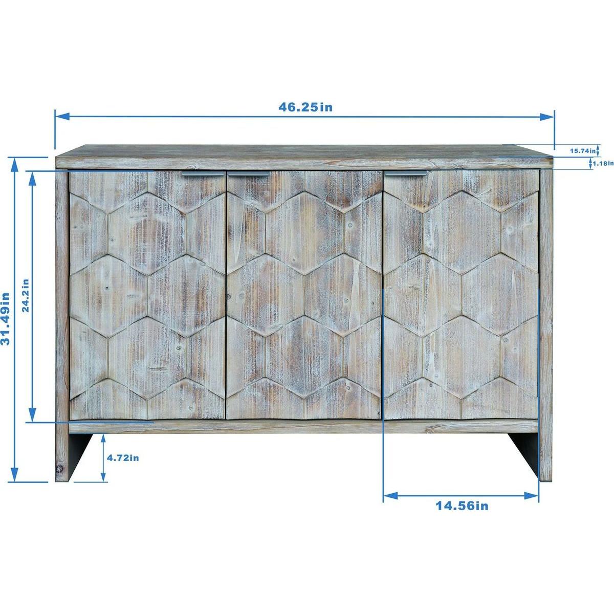 This cabinet is designed with minimalist style along with a stable structure to make a unique statement, which provides powerful practicality rather than a household adornment. With plenty of space to offer, utilize the casual three-door cabinet featuring two-tier storage to minimize clutter while keeping select essentials within easy reach, or display your favorite décor on the spacious upper counter. With decorative fluted doors add beauty and enhances the artistic sense of the entire home.